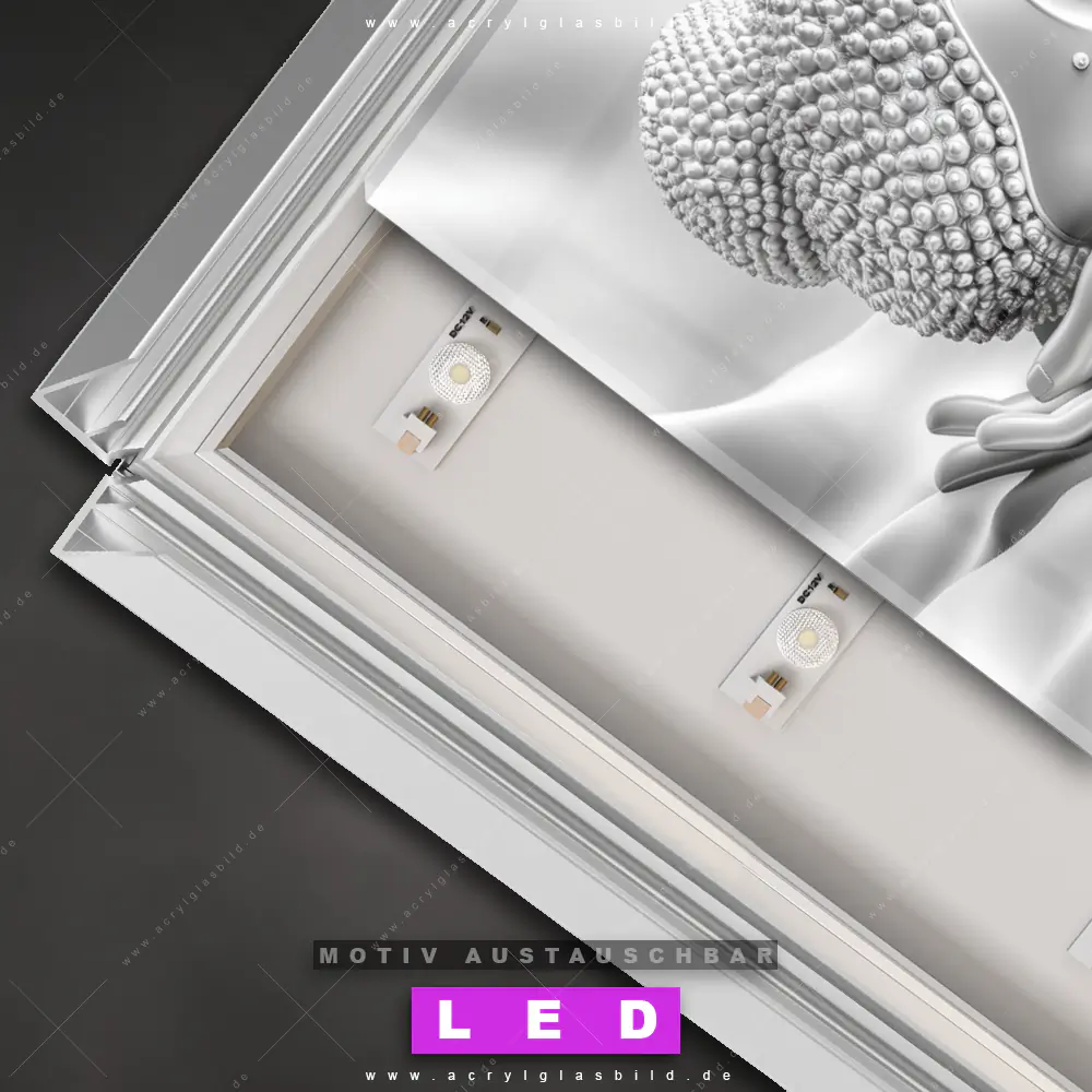 Also, worauf wartest du noch? Gib deinen Wänden den gewissen Wow-Effekt und bestelle jetzt das Canvalight® DIA LED Acrylglasbild Silberber Buddha - Sanfte Ruhe, um ein echtes Highlight an deine Wand zu zaubern!