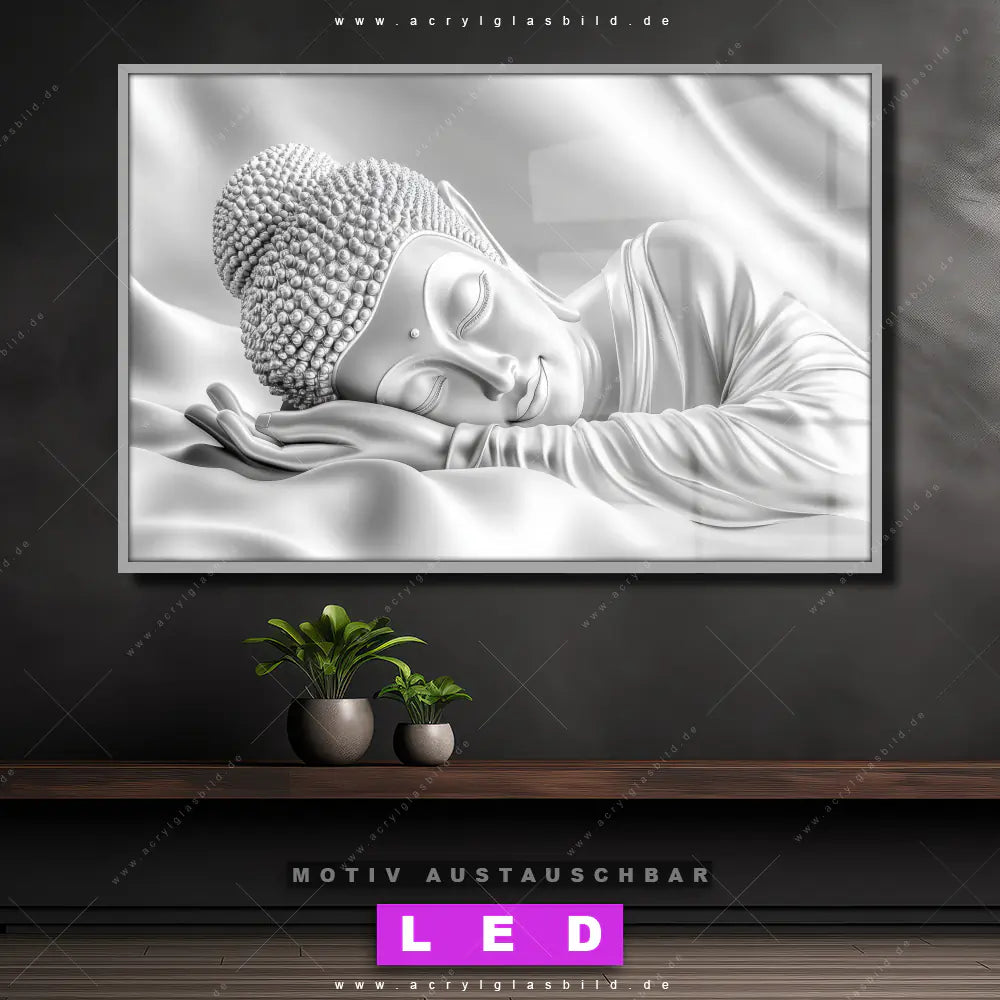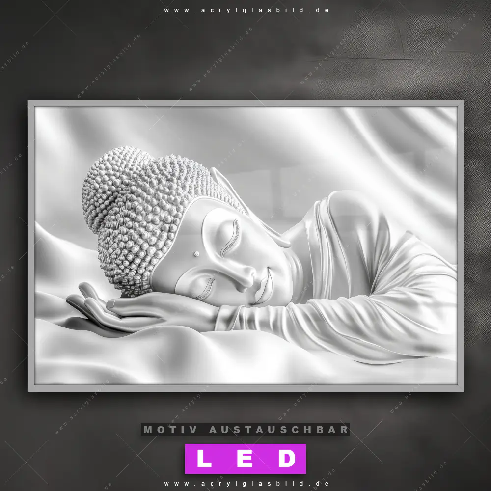 Mit unserem LED Acrylglasbild Canvalight® DIA Ruhender Buddha in Silber und seiner genialen LED-Ausleuchtung wirst du nie wieder im Dunkeln auf deinem Sofa herumtappen. Wenn du nach einem beleuchteten Wandbild aus Acrylglas mit Buddha, Buddhismus, Religion, Feng Shui, Zen, Meditation, spirituell, heilig, Esoterik, Gott, Statue für Arzt - Praxis, Wohnzimmer - Schlafzimmer, Flur - Eingangsbereich suchst, ist unser LED Leuchtbild Buddha - Traum der inneren Balance in den beeindruckenden Motiv-Farben Weiss, Grau , Silber genau das richtige beleuchtete Wandbild für dich. Gestaltet im Modern Art Stil, passt dieses LED Wandbild mit DIA-Klapprahmen und glänzender Front aus Acrylglas perfekt zu jedem Einrichtungsstil – sogar zu deinem chaotischen kreativen Durcheinander!