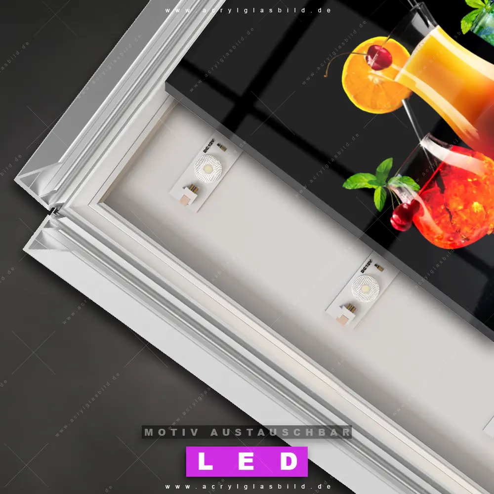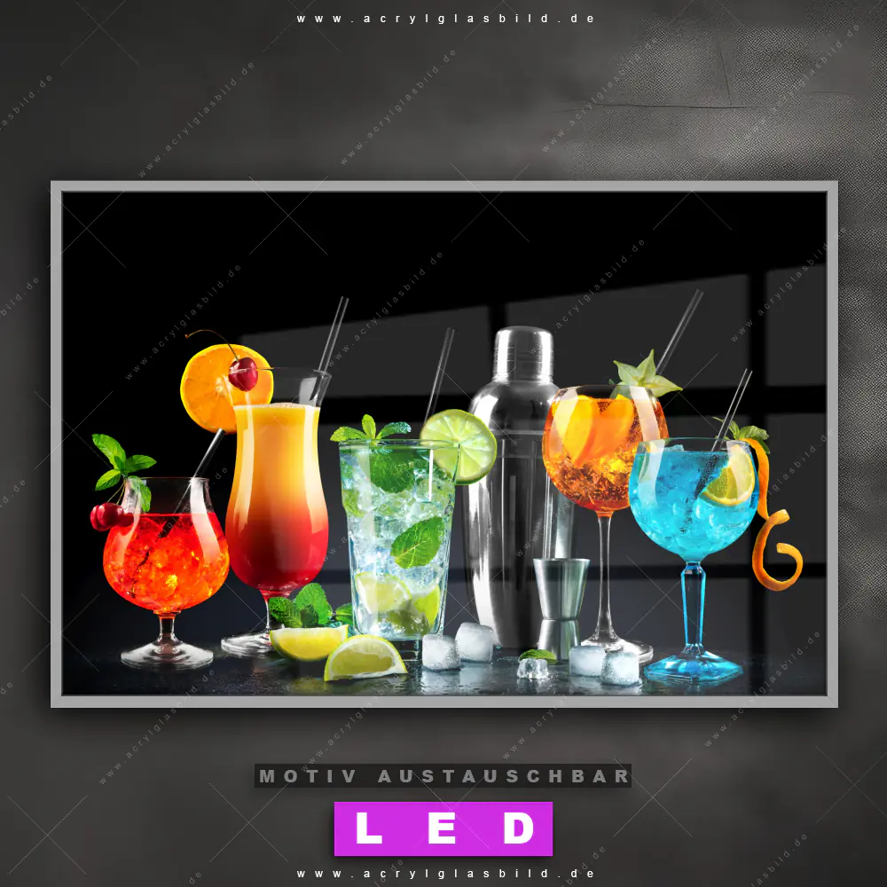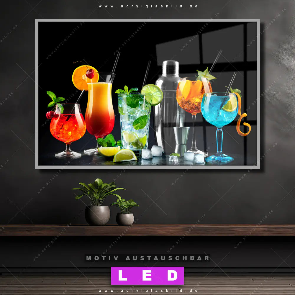Du bist auf der Suche nach einem dimmbaren Essen - Trinken LED Bild mit Fernbedienung und optionaler Farbtemperatursteuerung? Dann haben wir hier genau das richtige Wandbild mit LED Beleuchtung für dich: Unser Canvalight® DIA LED Acrylglasbild Bunte Cocktailträume im Querformat mit austauschbarer bedruckter Acrylglas-Scheibe. Dieses Leuchtbild bringt sofort Partybeleuchtung in deine Räume!