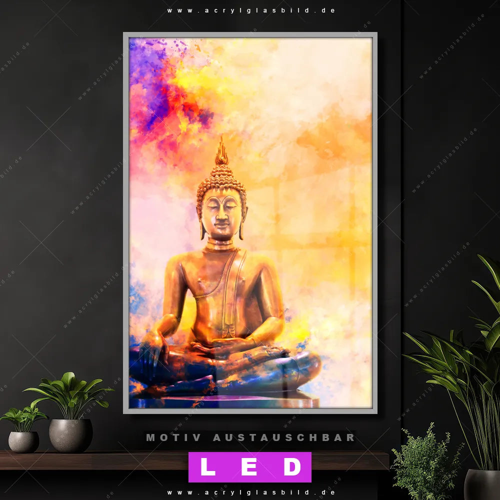 Du suchst nach einem Wandbild mit LED Beleuchtung als ultimativen Hingucker für deine Wände? Dann haben wir das perfekte dimmbare LED Bild mit Fernbedienung und optionaler Farbtemperatursteuerung für dich: unser abgefahrenes Buddha - Feng Shui Canvalight® DIA LED Acrylglasbild! Mit dem LED Leuchtbild aus Acrylglas Bunter Buddha No.3 im Hochformat mit austauschbarer bedruckter Acrylglas-Scheibe bringst du nicht nur Licht, sondern auch ordentlich Stil in deine Bude.