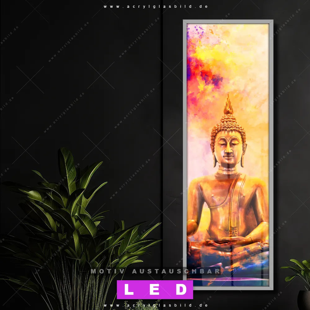 LED Acrylglasbild Canvalight® DIA | Bunter Buddha No.3 | Schmal