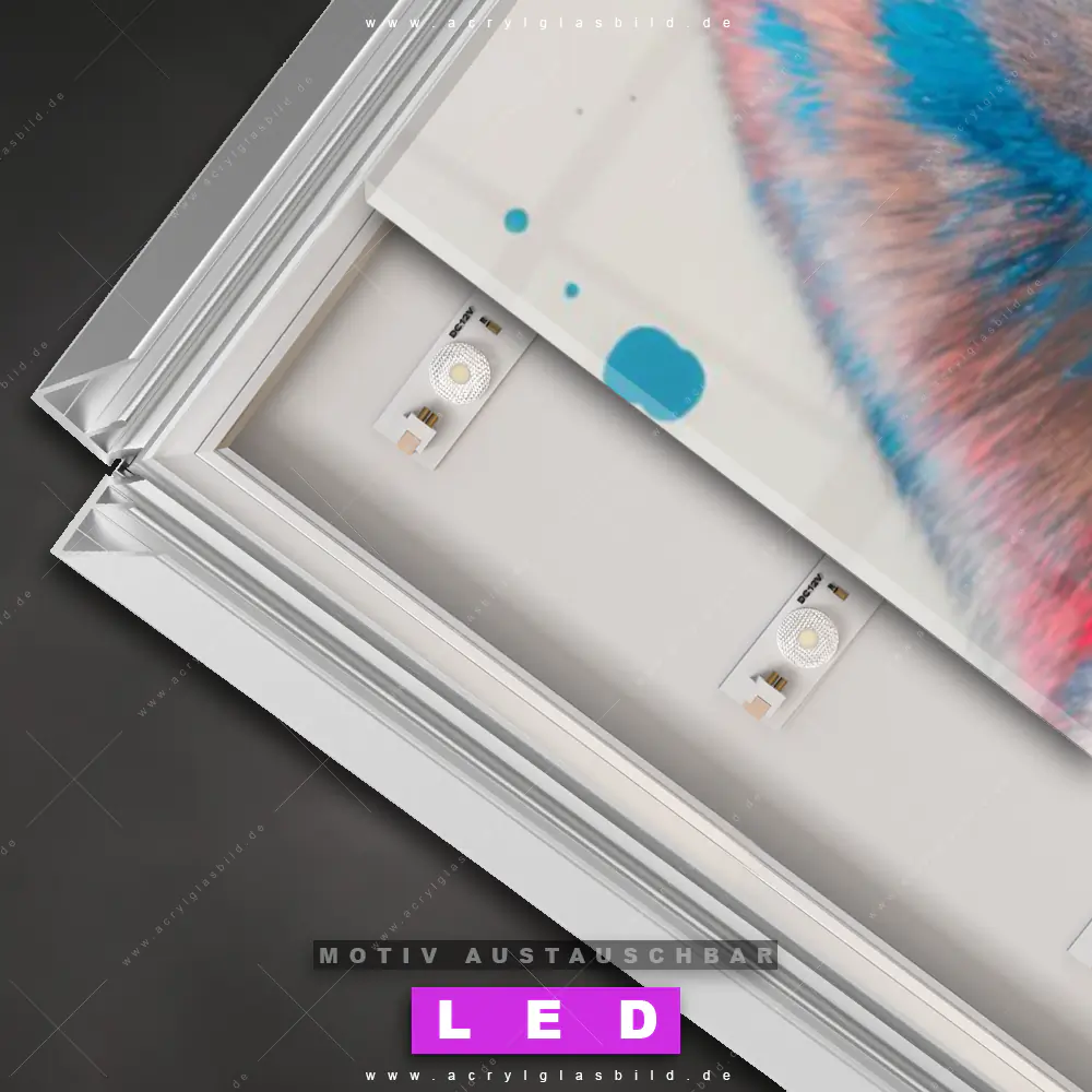 Bist du bereit, deine Wände mit einem dimmbaren LED Bild mit Fernbedienung und optionaler Farbtemperatursteuerung auf das nächste Level zu bringen? Unser Tierwelt Canvalight® DIA LED Acrylglasbild ist genau das, was du brauchst! Das Wandbild mit LED Beleuchtung im Schmalen Format mit austauschbarer bedruckter Acrylglas-Scheibe Bunter Gorilla mit Farbspritzern bringt Licht und Stil in dein Zuhause – und das in null Komma nichts!