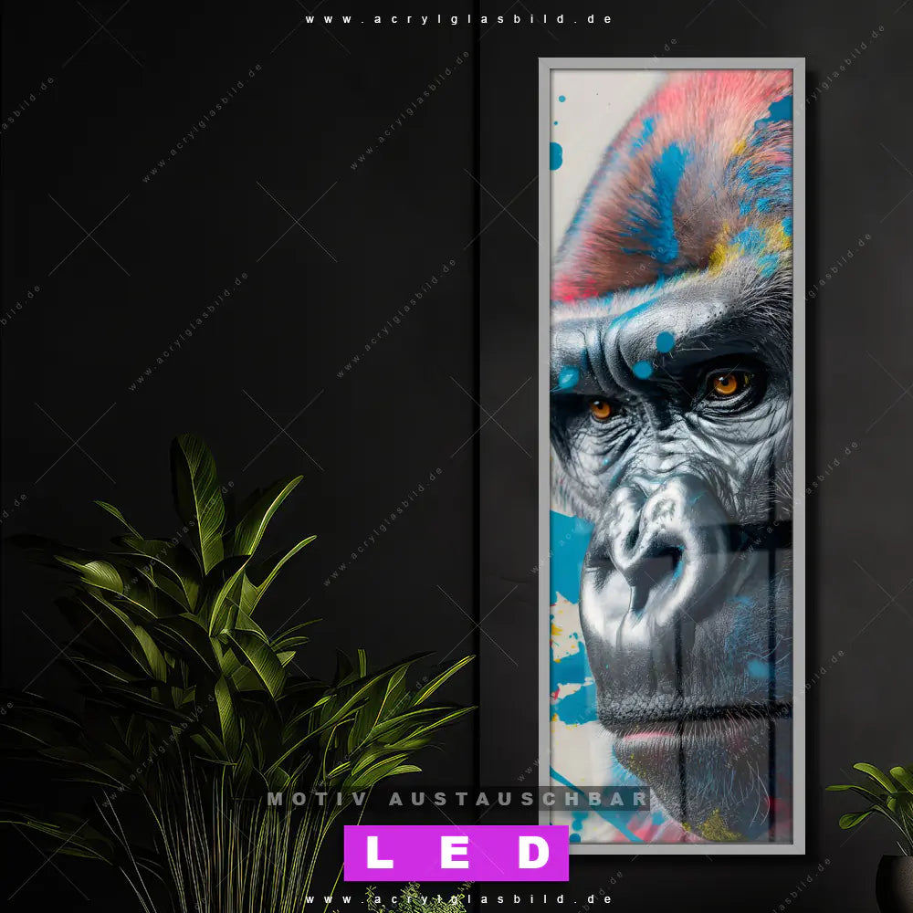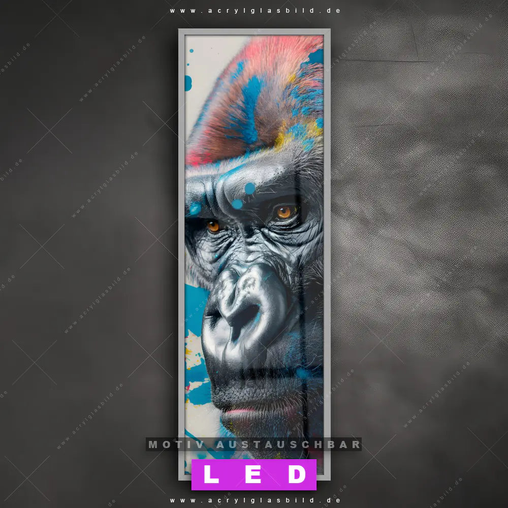 LED Acrylglasbild Canvalight® DIA | Bunter Gorilla mit Farbspritzern | Schmal