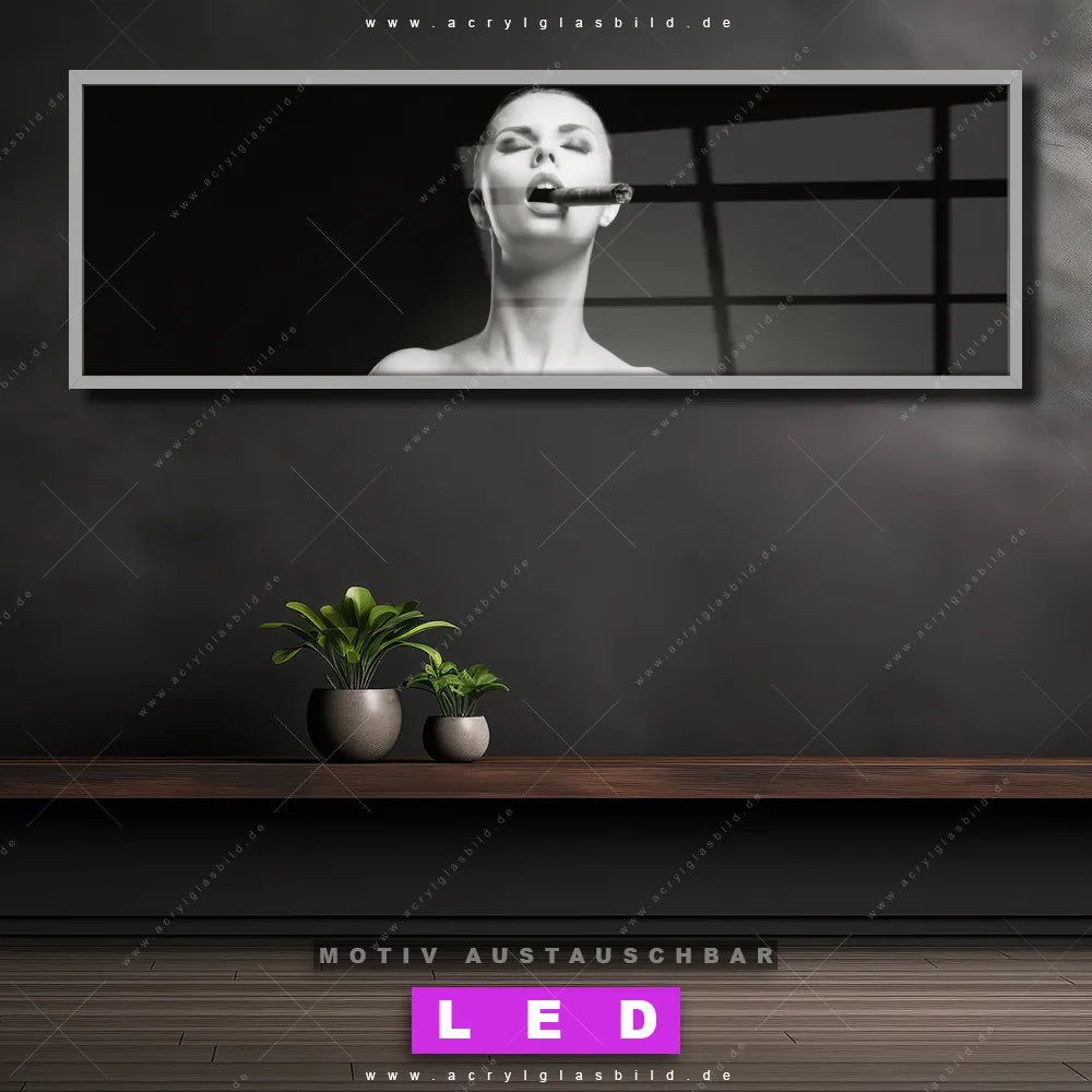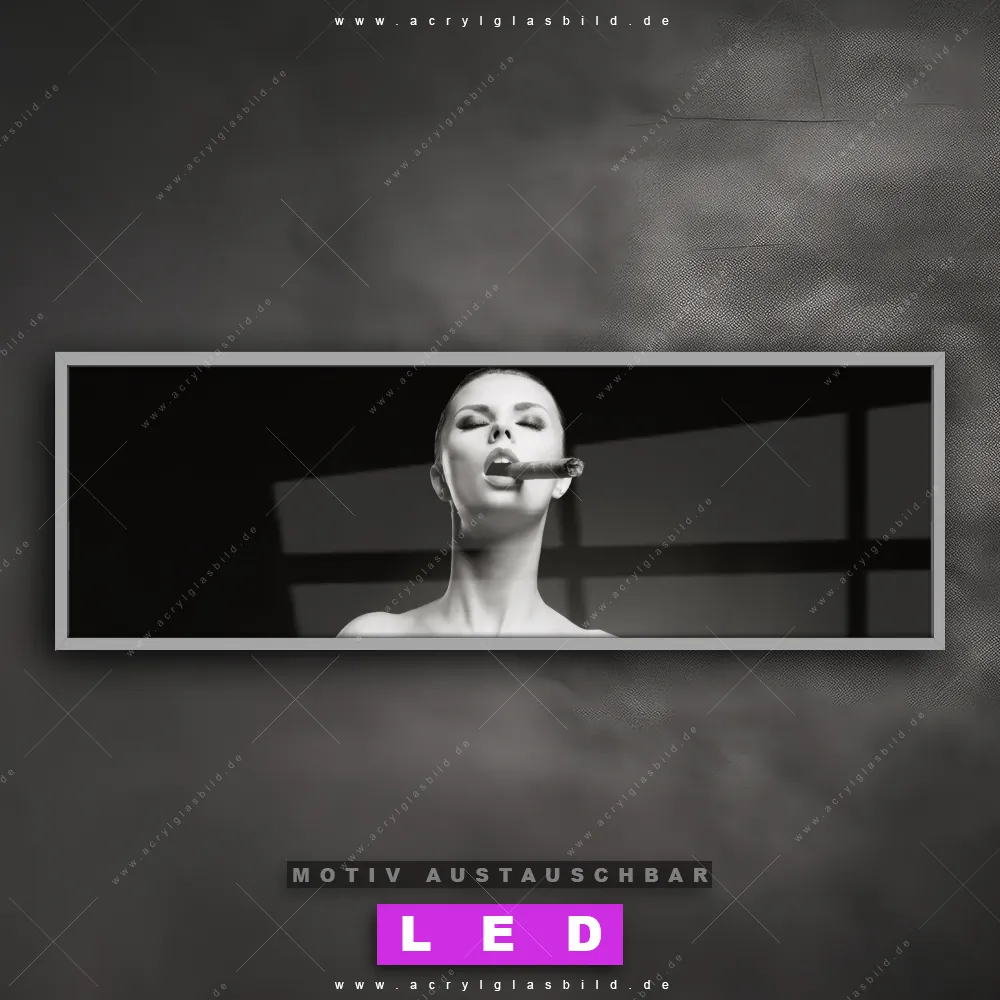 Deine Wände könnten dringend ein dimmbares LED Bild mit Fernbedienung und optionaler Farbtemperatursteuerung gebrauchen? Dann haben wir das perfekte Wandbild mit LED Beleuchtung für dich: unser mega-cooles Erotik - Akt Canvalight® DIA LED Acrylglasbild! Mit unserem angesagten Leuchtbild aus Acrylglas im Panorama-Format und der austauschbaren bedruckten Acrylglas-Scheibe Dame mit Zigarre bringst du nicht nur Licht, sondern auch jede Menge Flair in deine Räume.