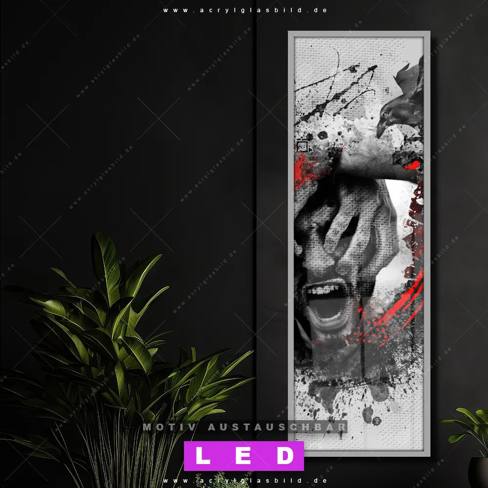 Bist du bereit, deine Wände mit einem dimmbaren LED Bild mit Fernbedienung und optionaler Farbtemperatursteuerung auf das nächste Level zu bringen? Unser Porträts - Menschen Canvalight® DIA LED Acrylglasbild ist genau das, was du brauchst! Das Wandbild mit LED Beleuchtung im Schmalen Format mit austauschbarer bedruckter Acrylglas-Scheibe Der Schrei - Grunge-Stil bringt Licht und Stil in dein Zuhause – und das in null Komma nichts!