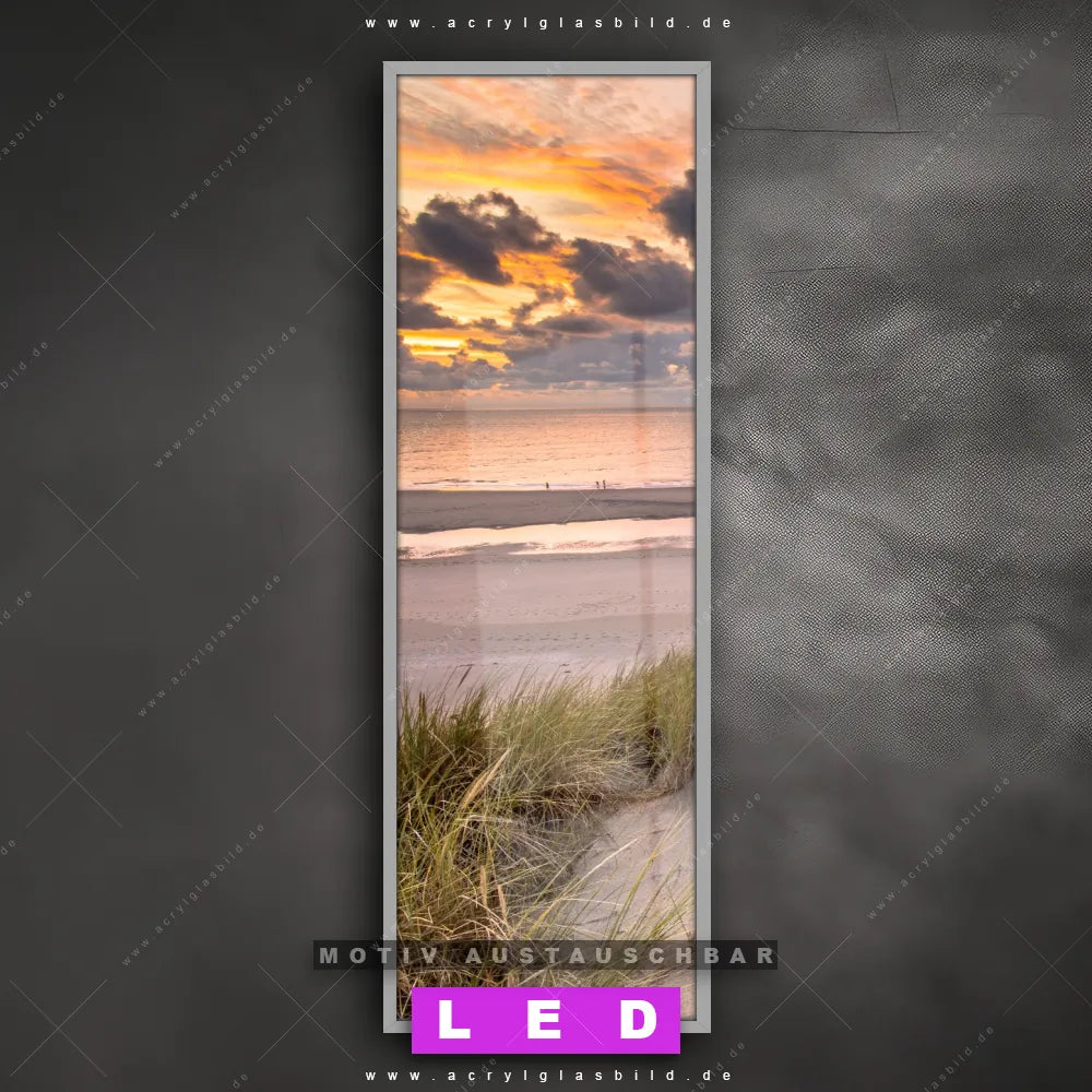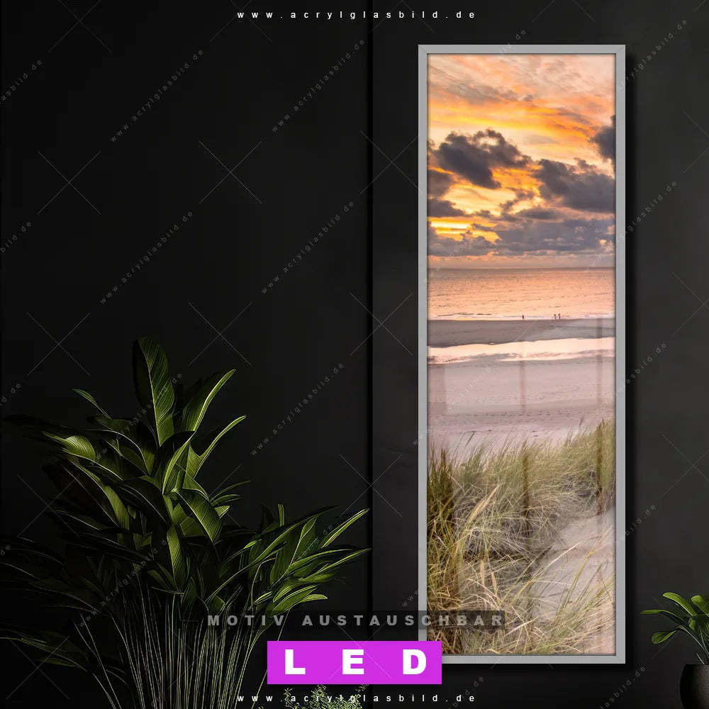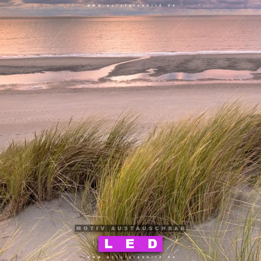 Bist du bereit, deine Wände mit einem dimmbaren LED Bild mit Fernbedienung und optionaler Farbtemperatursteuerung auf das nächste Level zu bringen? Unser Strand - Meer, Landschaften Canvalight® DIA LED Acrylglasbild ist genau das, was du brauchst! Das Wandbild mit LED Beleuchtung im Schmalen Format mit austauschbarer bedruckter Acrylglas-Scheibe Dünen am Nordseestrand bringt Licht und Stil in dein Zuhause – und das in null Komma nichts!