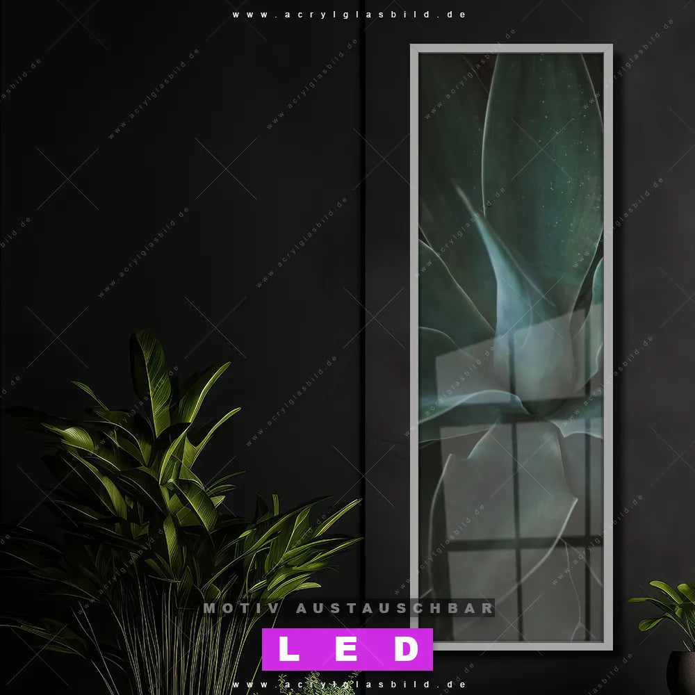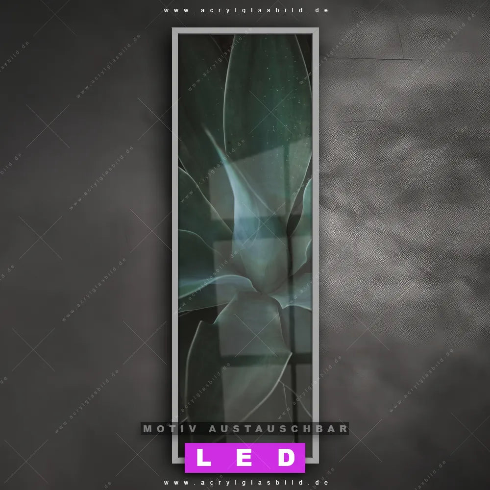 Bist du bereit, deine Wände mit einem dimmbaren LED Bild mit Fernbedienung und optionaler Farbtemperatursteuerung auf das nächste Level zu bringen? Unser Blumen - Botanik Canvalight® DIA LED Acrylglasbild ist genau das, was du brauchst! Das Wandbild mit LED Beleuchtung im Schmalen Format mit austauschbarer bedruckter Acrylglas-Scheibe Dunkles Agavenblatt bringt Licht und Stil in dein Zuhause – und das in null Komma nichts!