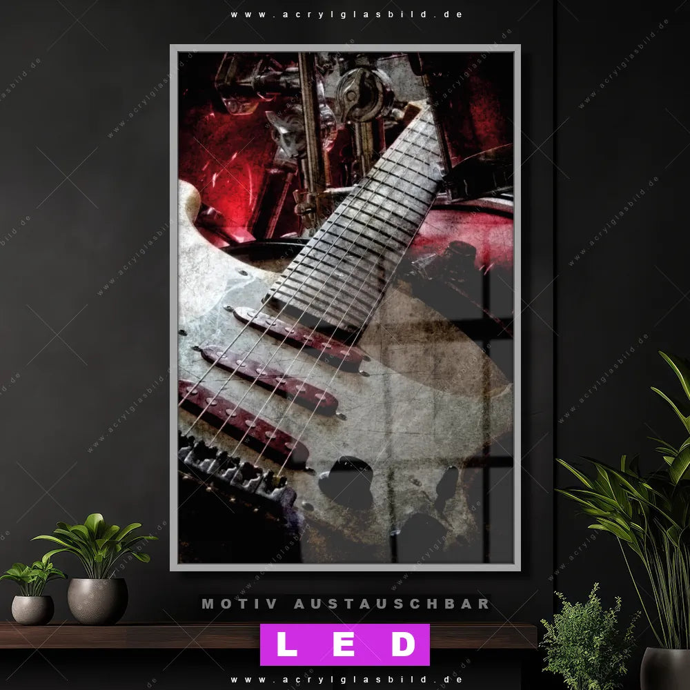 LED Acrylglasbild Canvalight® DIA | E-Gitarre Retro Look | Hochformat