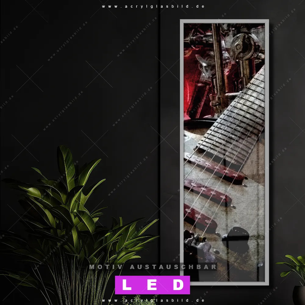Bist du bereit, deine Wände mit einem dimmbaren LED Bild mit Fernbedienung und optionaler Farbtemperatursteuerung auf das nächste Level zu bringen? Unser Porträts - Menschen Canvalight® DIA LED Acrylglasbild ist genau das, was du brauchst! Das Wandbild mit LED Beleuchtung im Schmalen Format mit austauschbarer bedruckter Acrylglas-Scheibe E-Gitarre Retro Look bringt Licht und Stil in dein Zuhause – und das in null Komma nichts!
