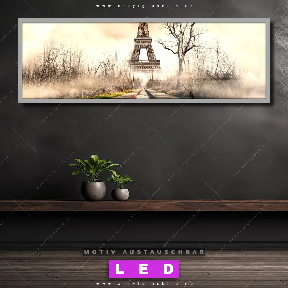 Deine Wände könnten dringend ein dimmbares LED Bild mit Fernbedienung und optionaler Farbtemperatursteuerung gebrauchen? Dann haben wir das perfekte Wandbild mit LED Beleuchtung für dich: unser mega-cooles Landschaften Canvalight® DIA LED Acrylglasbild! Mit unserem angesagten Leuchtbild aus Acrylglas im Panorama-Format und der austauschbaren bedruckten Acrylglas-Scheibe Eifelturm am Abstellgleis bringst du nicht nur Licht, sondern auch jede Menge Flair in deine Räume.