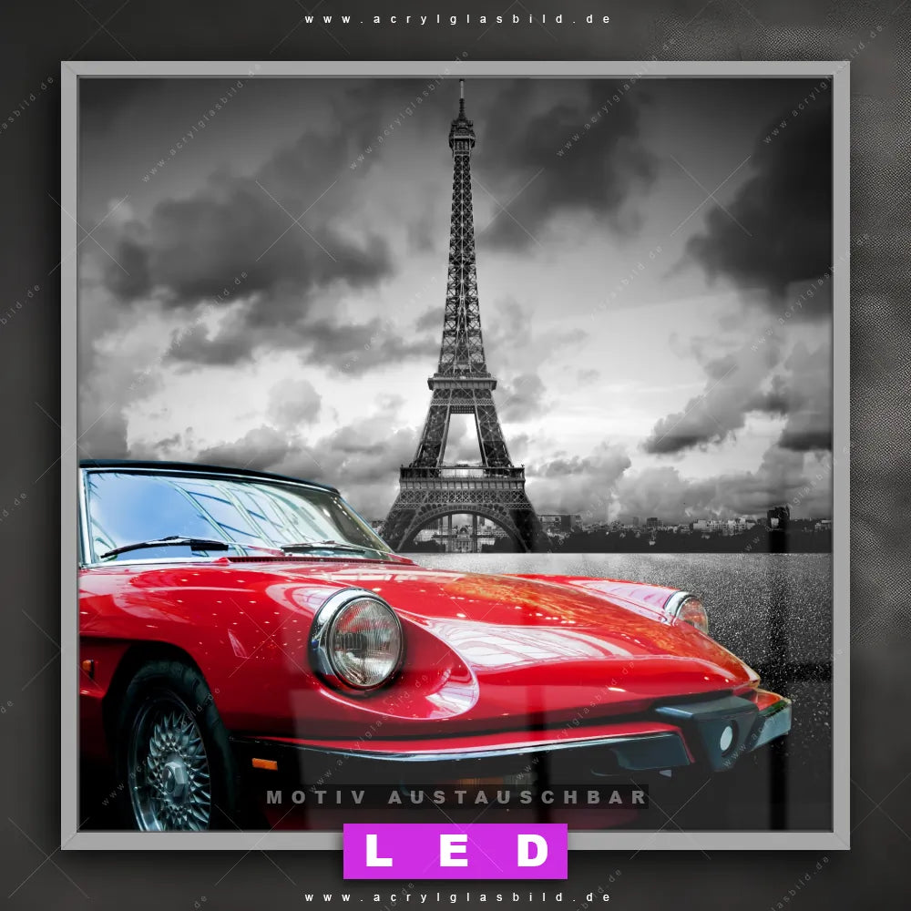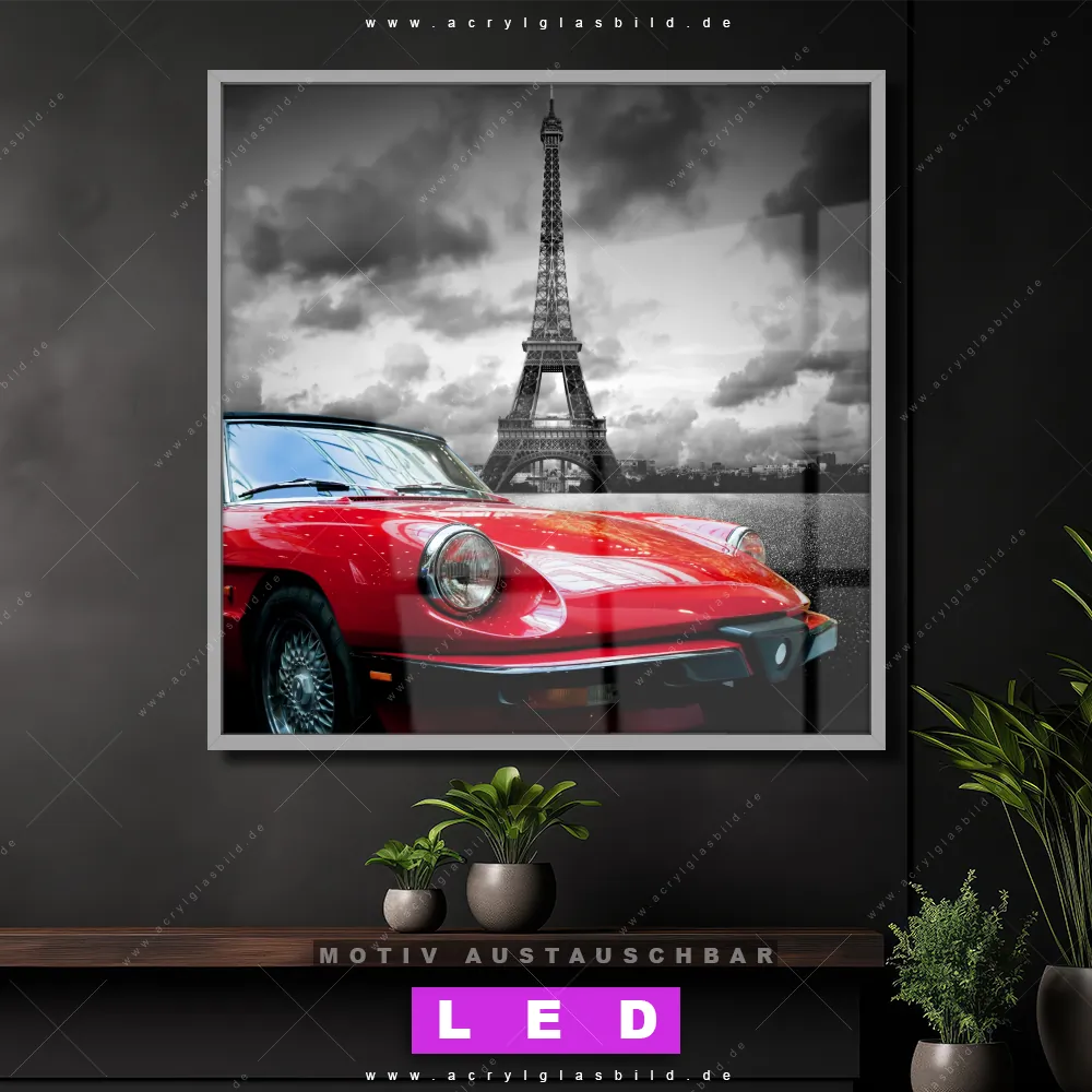 Bist du bereit, deine Wände mit einem dimmbaren LED Bild mit Fernbedienung und optionaler Farbtemperatursteuerung zum Leuchten zu bringen? Wir haben das ultimative Städte - Skylines, Fahrzeuge LED Acrylglasbild Canvalight® DIA für dich! Unser LED Wandbild aus Acrylglas Eiffelturm & Rotes Auto im Quadratischen Format mit austauschbarer bedruckter Acrylglas-Scheibe im DIA-Klapprahmen bringt sofort jede Menge Glanz in deine vier Wände.