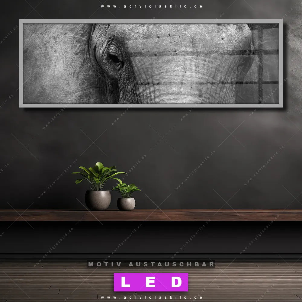 Deine Wände könnten dringend ein dimmbares LED Bild mit Fernbedienung und optionaler Farbtemperatursteuerung gebrauchen? Dann haben wir das perfekte Wandbild mit LED Beleuchtung für dich: unser mega-cooles Tierwelt Canvalight® DIA LED Acrylglasbild! Mit unserem angesagten Leuchtbild aus Acrylglas im Panorama-Format und der austauschbaren bedruckten Acrylglas-Scheibe Elefant Schwarzweiß bringst du nicht nur Licht, sondern auch jede Menge Flair in deine Räume.