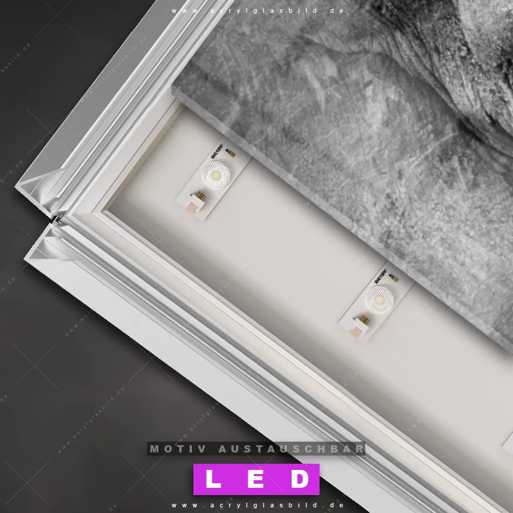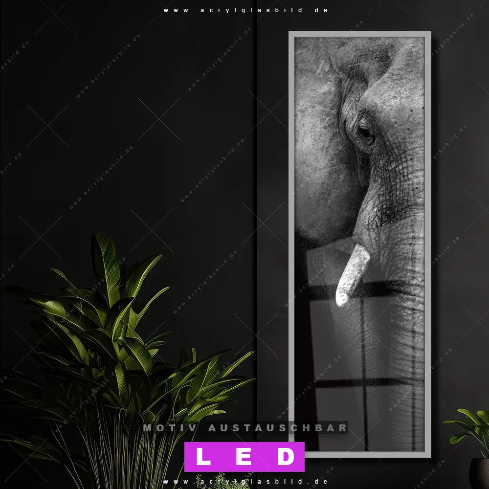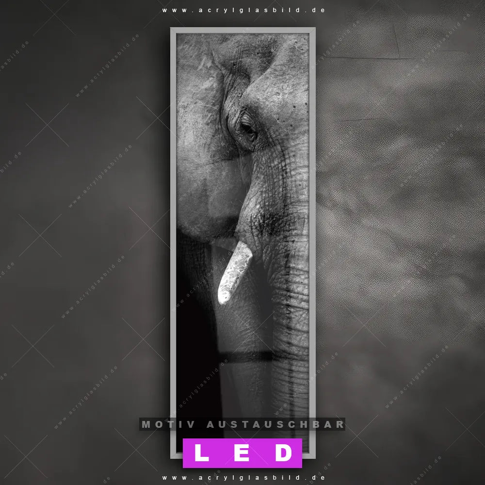 Bist du bereit, deine Wände mit einem dimmbaren LED Bild mit Fernbedienung und optionaler Farbtemperatursteuerung auf das nächste Level zu bringen? Unser Tierwelt Canvalight® DIA LED Acrylglasbild ist genau das, was du brauchst! Das Wandbild mit LED Beleuchtung im Schmalen Format mit austauschbarer bedruckter Acrylglas-Scheibe Elefant Schwarzweiß bringt Licht und Stil in dein Zuhause – und das in null Komma nichts!
