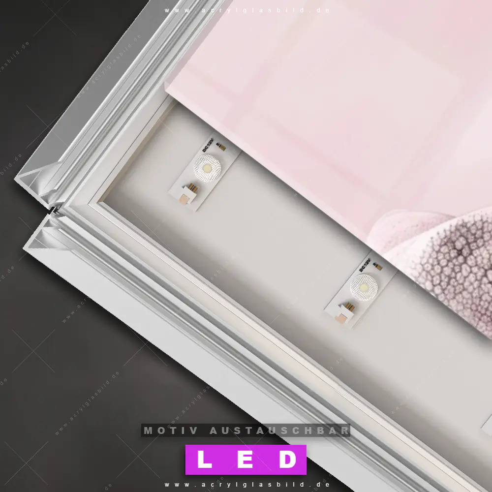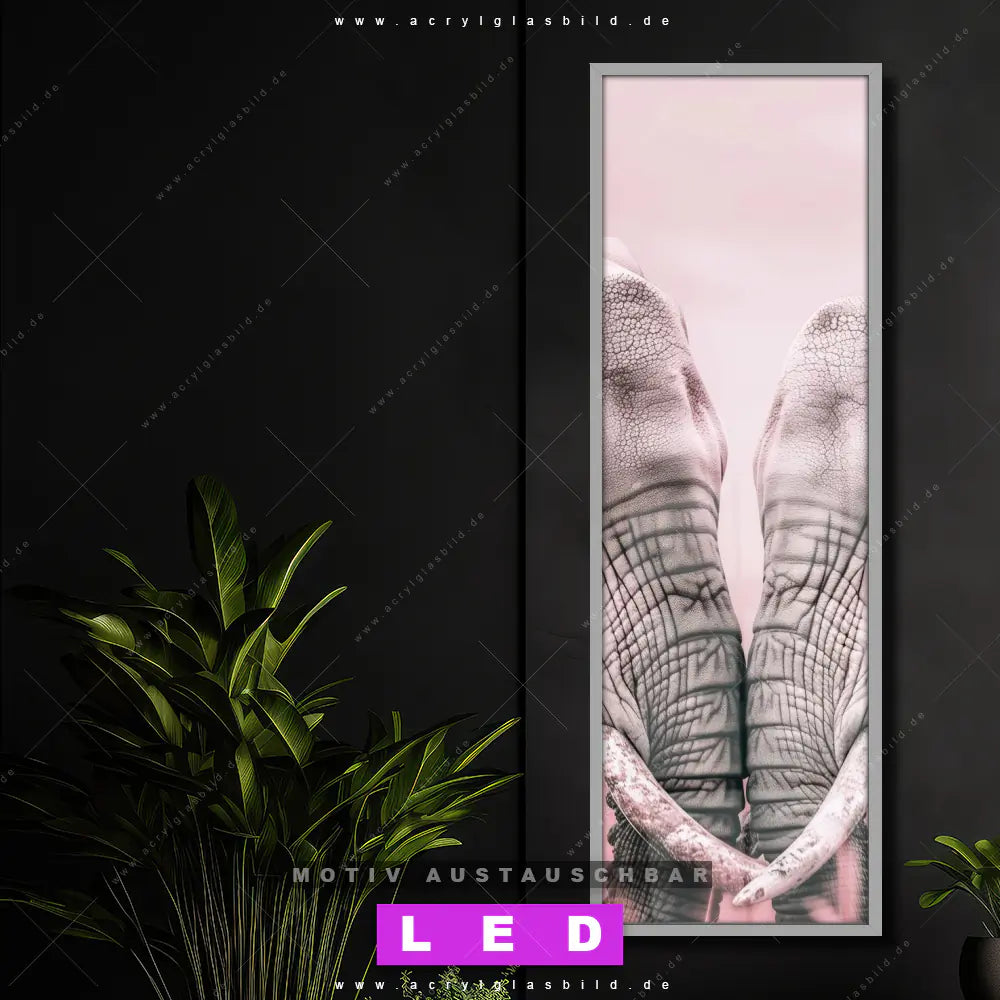 Bist du bereit, deine Wände mit einem dimmbaren LED Bild mit Fernbedienung und optionaler Farbtemperatursteuerung auf das nächste Level zu bringen? Unser Tierwelt Canvalight® DIA LED Acrylglasbild ist genau das, was du brauchst! Das Wandbild mit LED Beleuchtung im Schmalen Format mit austauschbarer bedruckter Acrylglas-Scheibe Elefanten - Harmonie in Pastell bringt Licht und Stil in dein Zuhause – und das in null Komma nichts!