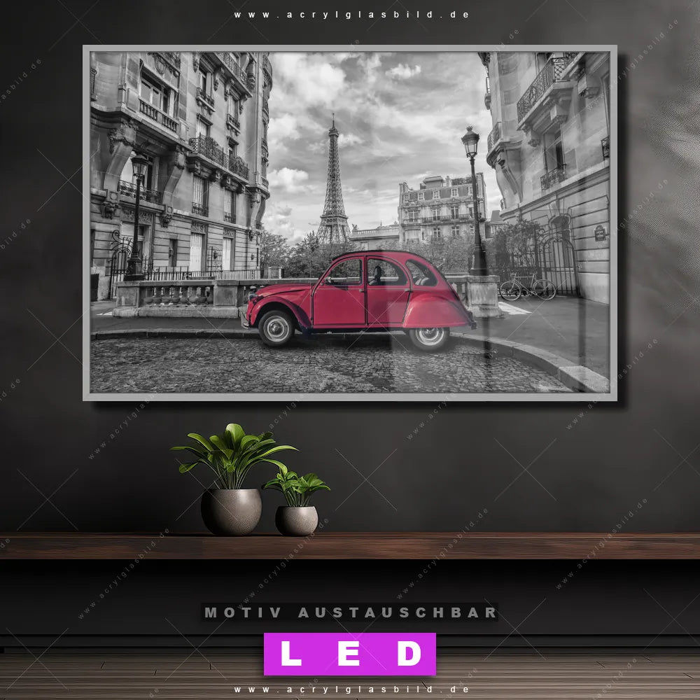 Mit unserem LED Acrylglasbild Canvalight® DIA Oldtimer in Paris und seiner genialen LED-Ausleuchtung wirst du nie wieder im Dunkeln auf deinem Sofa herumtappen. Wenn du nach einem beleuchteten Wandbild aus Acrylglas mit Sehenswürdigkeiten, Frankreich, Paris, Eifelturm, Auto, Ente, Schwarzweiss, Eiffelturm, Oldtimer für Arzt - Praxis, Bar - Gastronomie, Büro - Kanzlei, Wohnzimmer - Schlafzimmer suchst, ist unser LED Leuchtbild Oldtimer mit Eiffelturm im Hintergrund in den beeindruckenden Motiv-Farben Weiss, Schwarz, Rot genau das richtige beleuchtete Wandbild für dich. Gestaltet im Modern Art, Minimalistisch, Schwarz - Weiss Stil, passt dieses LED Wandbild mit DIA-Klapprahmen und glänzender Front aus Acrylglas perfekt zu jedem Einrichtungsstil – sogar zu deinem chaotischen kreativen Durcheinander!