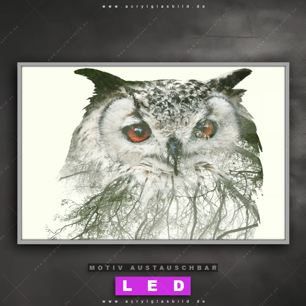 Du bist auf der Suche nach einem dimmbaren Tierwelt LED Bild mit Fernbedienung und optionaler Farbtemperatursteuerung? Dann haben wir hier genau das richtige Wandbild mit LED Beleuchtung für dich: Unser Canvalight® DIA LED Acrylglasbild Eule & Wald No.1 im Querformat mit austauschbarer bedruckter Acrylglas-Scheibe. Dieses Leuchtbild bringt sofort Partybeleuchtung in deine Räume!