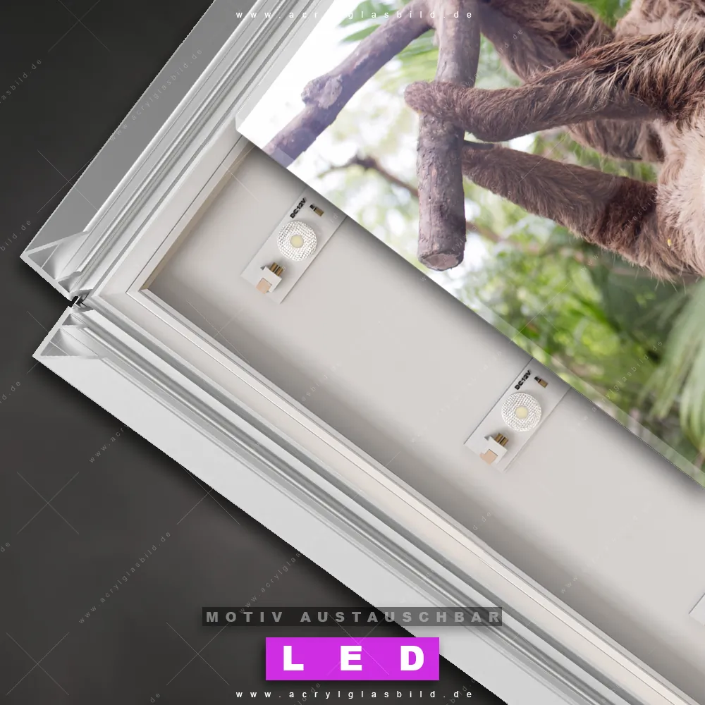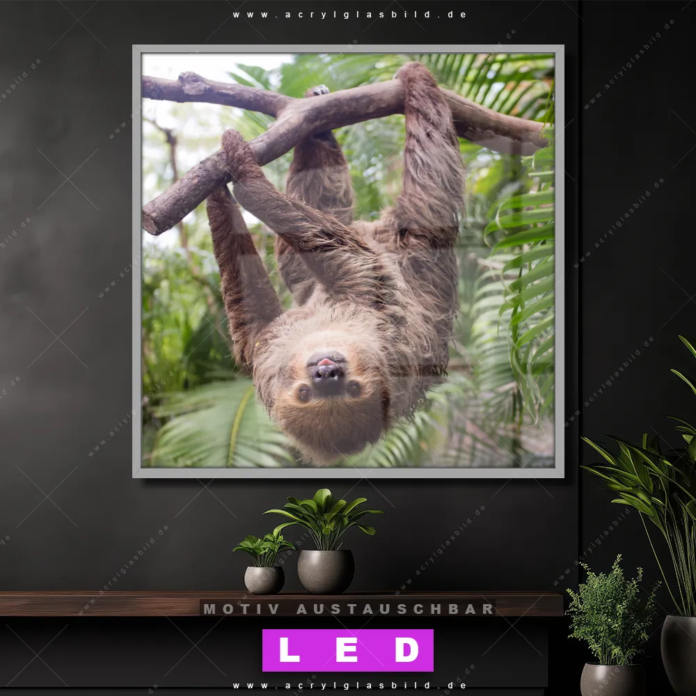 Bist du bereit, deine Wände mit einem dimmbaren LED Bild mit Fernbedienung und optionaler Farbtemperatursteuerung zum Leuchten zu bringen? Wir haben das ultimative Tierwelt, Wald - Bäume LED Acrylglasbild Canvalight® DIA für dich! Unser LED Wandbild aus Acrylglas Faultier streckt Zunge raus im Quadratischen Format mit austauschbarer bedruckter Acrylglas-Scheibe im DIA-Klapprahmen bringt sofort jede Menge Glanz in deine vier Wände.