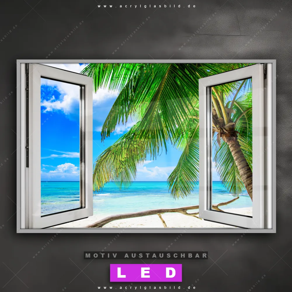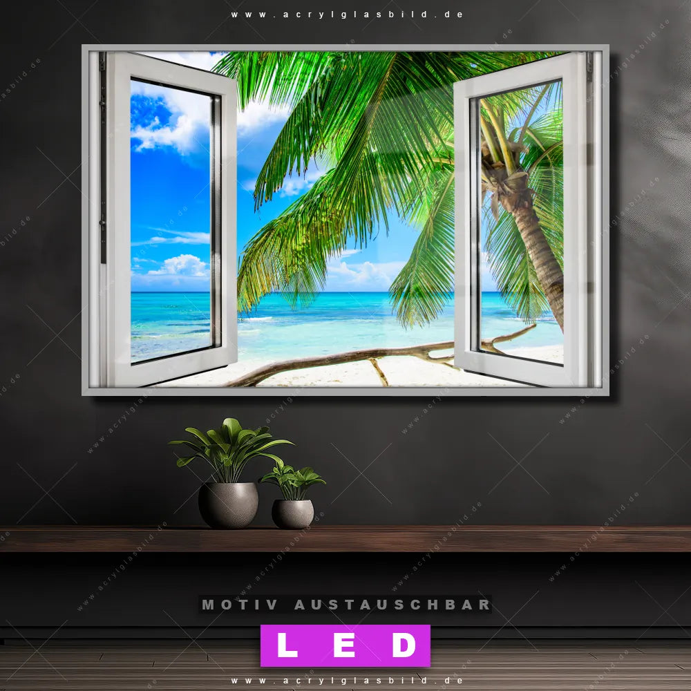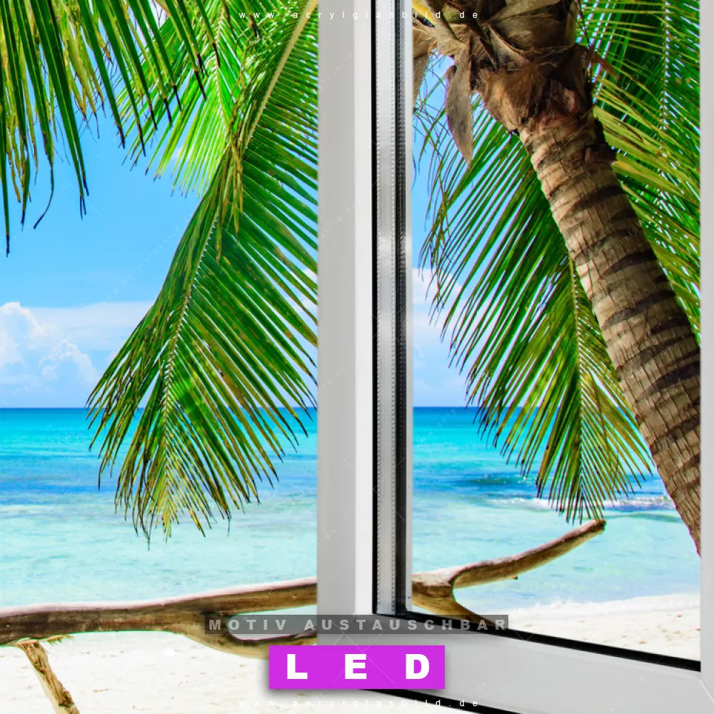 LED Acrylglasbild Canvalight® DIA | Fensterblick Karibik Palme | Querformat