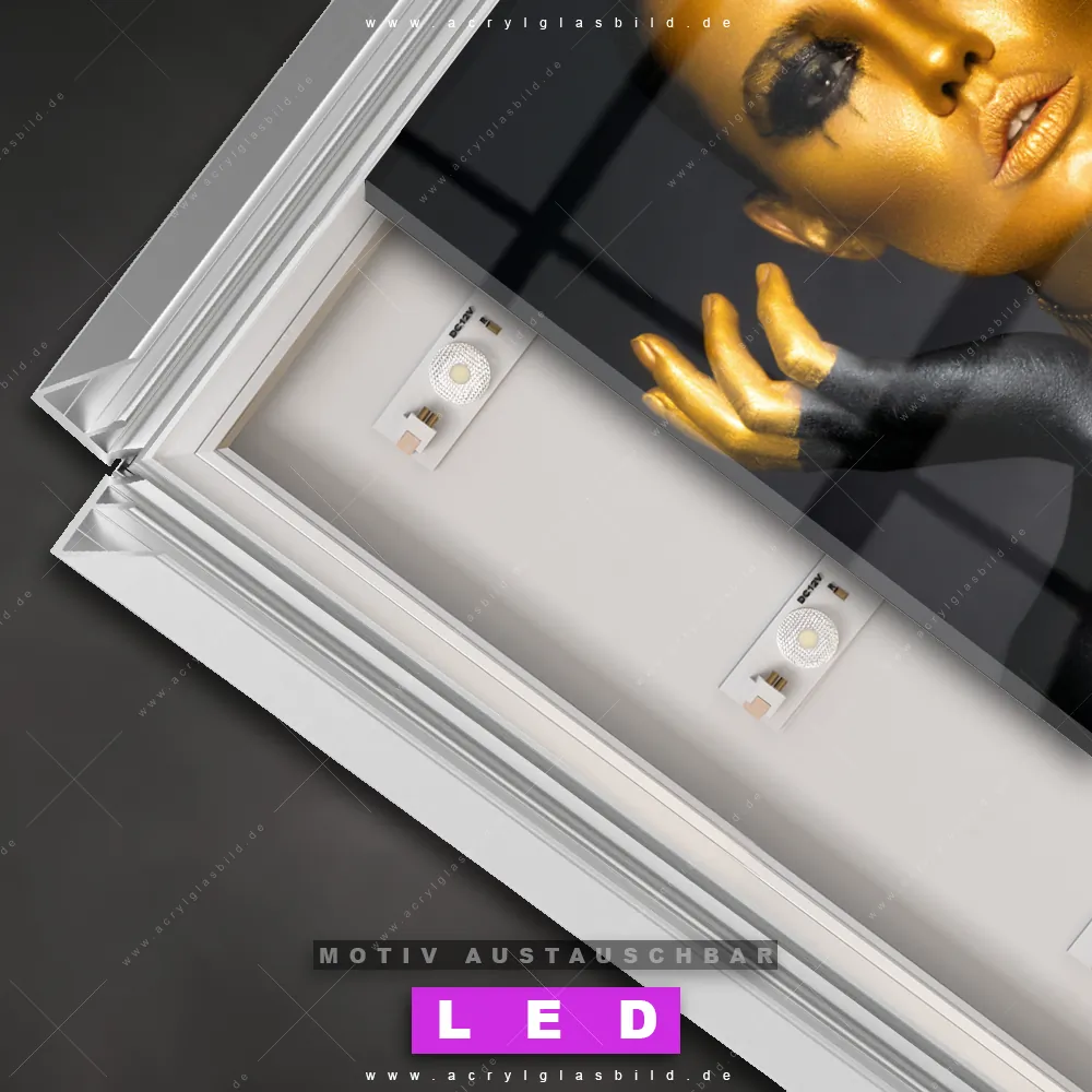 Na, worauf wartest du noch? Mach deine Wände zum Star der Show und bestelle jetzt das Canvalight® DIA LED Acrylglasbild Sinnlichkeit in schwarz-gold. Deine Wände werden es dir danken und deine Freunde werden dank der wechselbaren Motive vor Neid platzen!