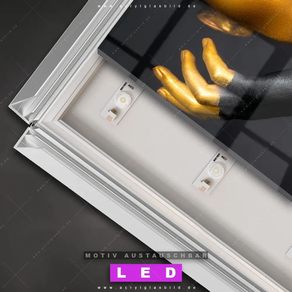 Du bist auf der Suche nach einem dimmbaren Porträts - Menschen LED Bild mit Fernbedienung und optionaler Farbtemperatursteuerung? Dann haben wir hier genau das richtige Wandbild mit LED Beleuchtung für dich: Unser Canvalight® DIA LED Acrylglasbild Fingerspitzengefühl im Querformat mit austauschbarer bedruckter Acrylglas-Scheibe. Dieses Leuchtbild bringt sofort Partybeleuchtung in deine Räume!