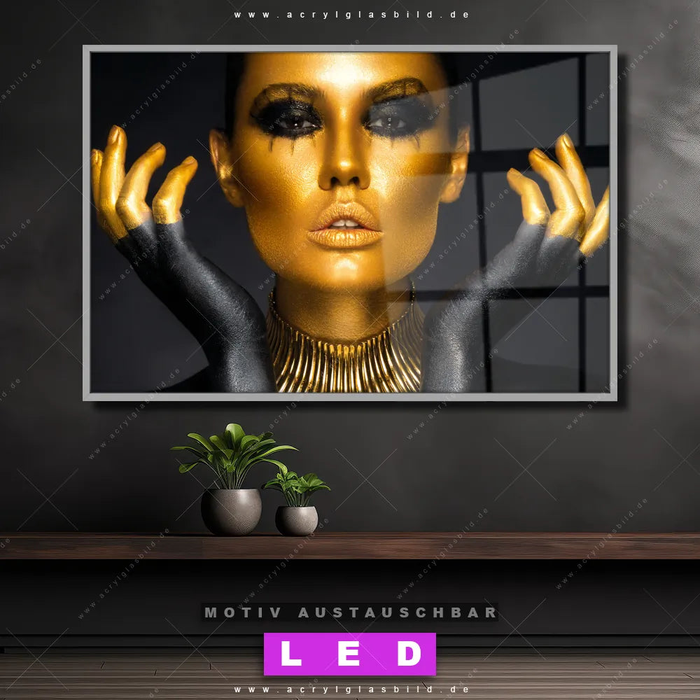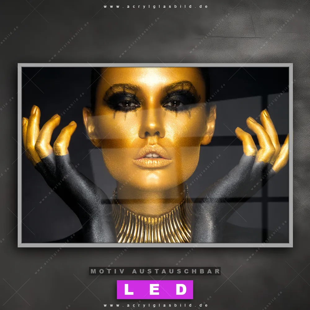 Mit unserem LED Acrylglasbild Canvalight® DIA Raubkatze und seiner genialen LED-Ausleuchtung wirst du nie wieder im Dunkeln auf deinem Sofa herumtappen. Wenn du nach einem beleuchteten Wandbild aus Acrylglas mit Frau, Beauty, Gesicht, Körper, Lippen, Mund, Make-up für Bar - Gastronomie, Friseur - Beauty, Wohnzimmer - Schlafzimmer suchst, ist unser LED Leuchtbild schwarz-goldene Schönheit in den beeindruckenden Motiv-Farben Gold, Schwarz genau das richtige beleuchtete Wandbild für dich. Gestaltet im Modern Art Stil, passt dieses LED Wandbild mit DIA-Klapprahmen und glänzender Front aus Acrylglas perfekt zu jedem Einrichtungsstil – sogar zu deinem chaotischen kreativen Durcheinander!