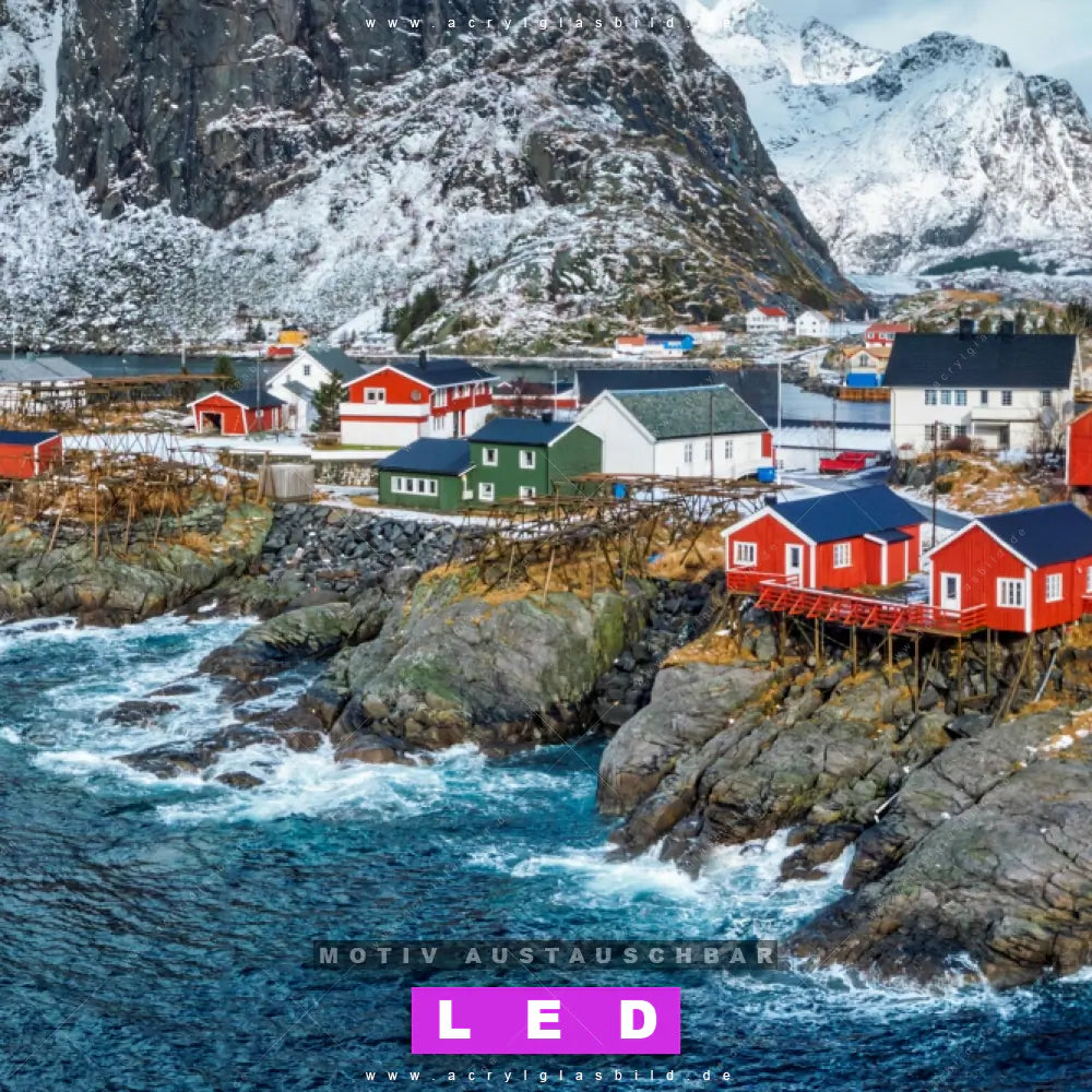 Also, warum noch zögern? Mach deine Wände mit einem Leuchtbild zum absoluten Hingucker und bestelle jetzt das Canvalight® DIA LED Acrylglasbild Häuser am norwegischen Fjord. Deine Wände werden leuchten, und deine Freunde werden dank der wechselbaren Motive beeindruckt sein!