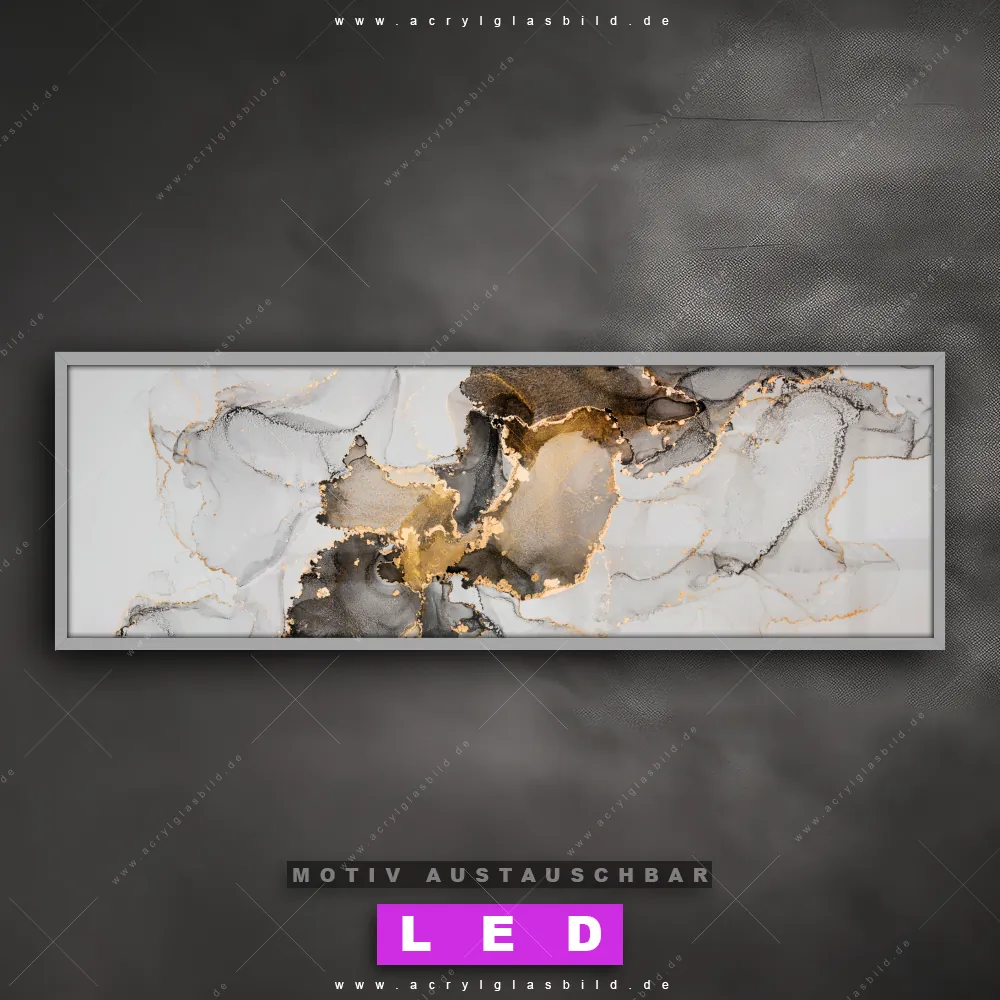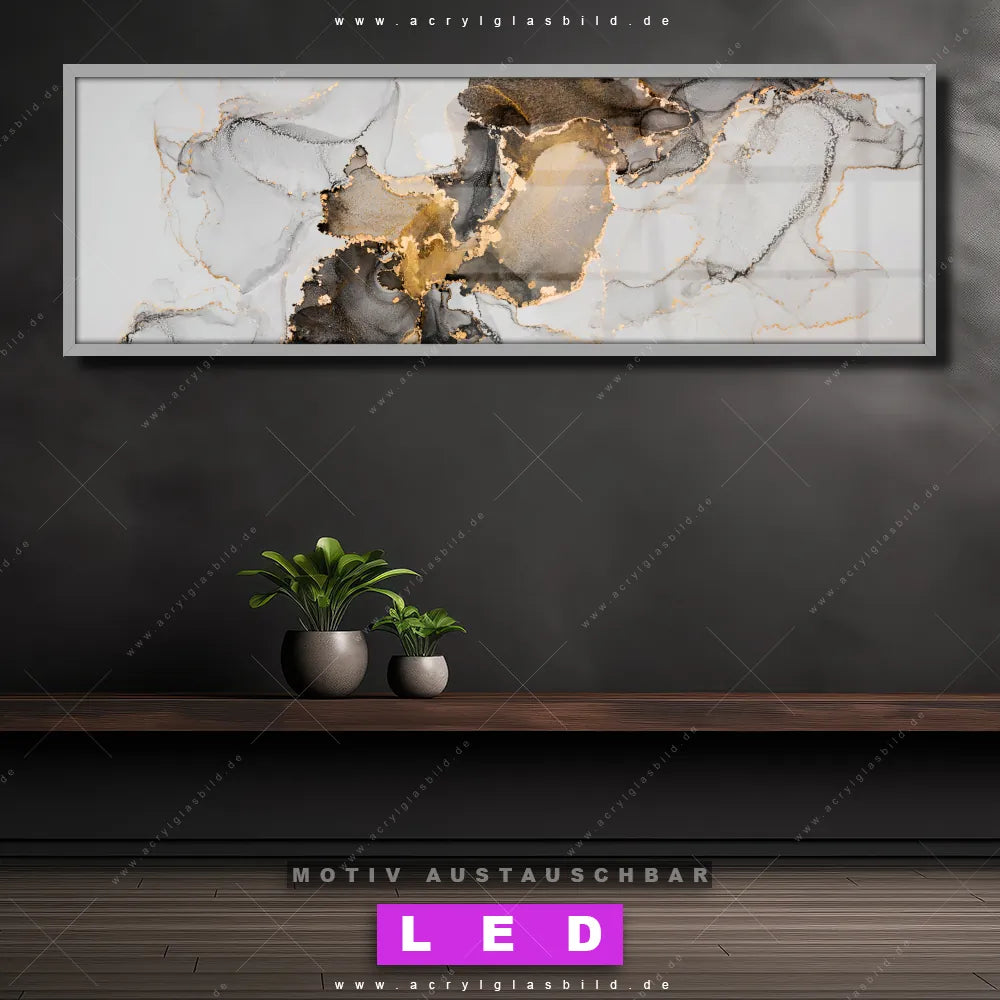 Wer will schon dunkle, triste Wände? Mit unserem LED Acrylglasbild Canvalight® DIA Marmormuster und seiner fantastischen LED-Ausleuchtung werden deine Wände in Arzt - Praxis, Büro - Kanzlei, Wohnzimmer - Schlafzimmer, Bar - Gastronomie, Friseur - Beauty zu echten Hinguckern. Wenn du auf der Suche nach einem beleuchteten Wandbild aus Acrylglas mit Flüssigkeit, Acryl, flüssig, Farbe, Marmorierung, Tinte, Alkohol, Goldader, Fluid Art bist, dann solltest du unser LED Leuchhtbild Marmorierungseffekte mit den beeindruckenden Motiv-Farben Gold, Weiss, Schwarz nicht verpassen. Gestaltet im angesagten Abstrakt, Modern Art Stil, passt das LED Bild mit DIA-Klapprahmen und wechselbarer Acrylglas-Scheibe perfekt zu jedem Einrichtungsstil – selbst in deinem kleinen Dschungel aus Kreativität und Chaos!