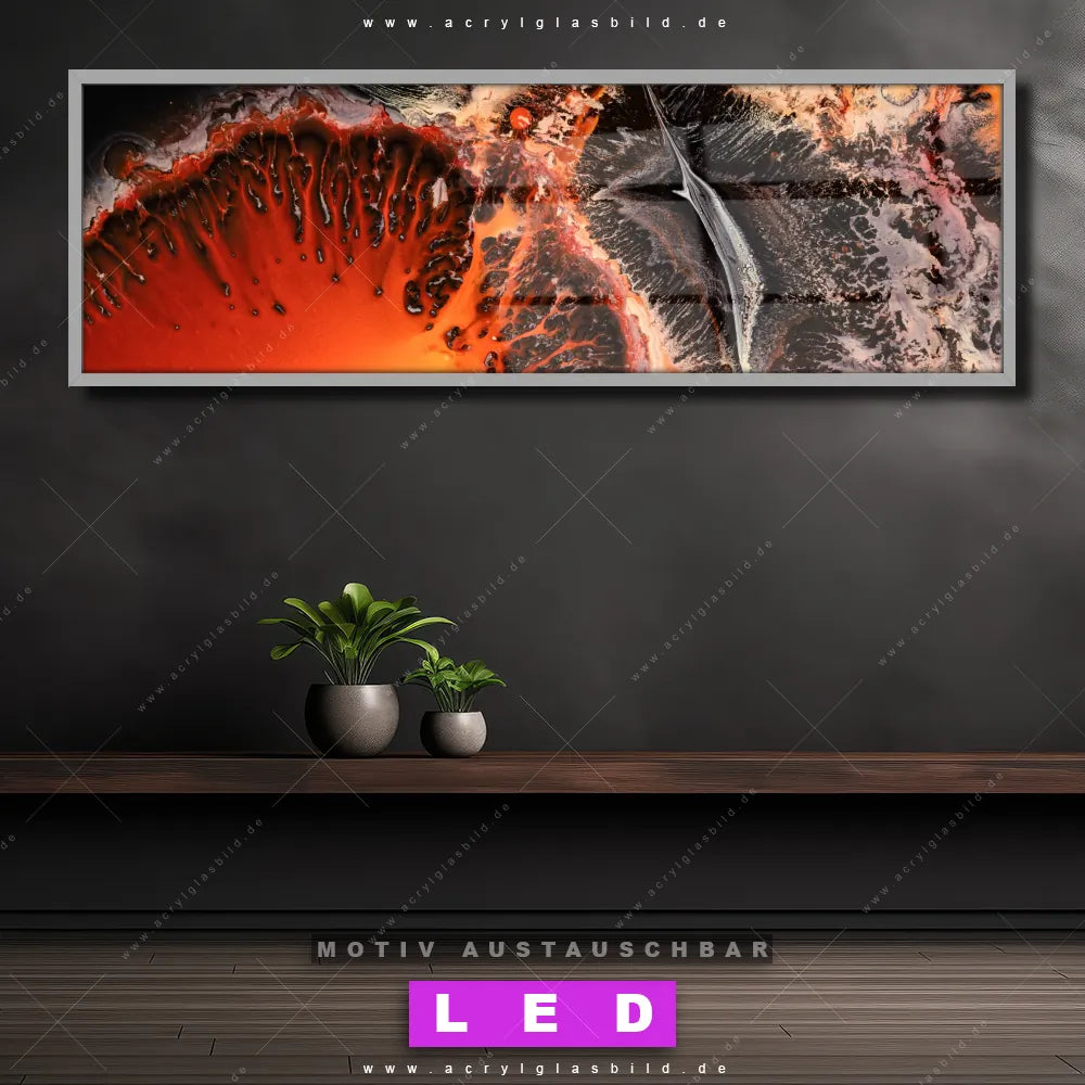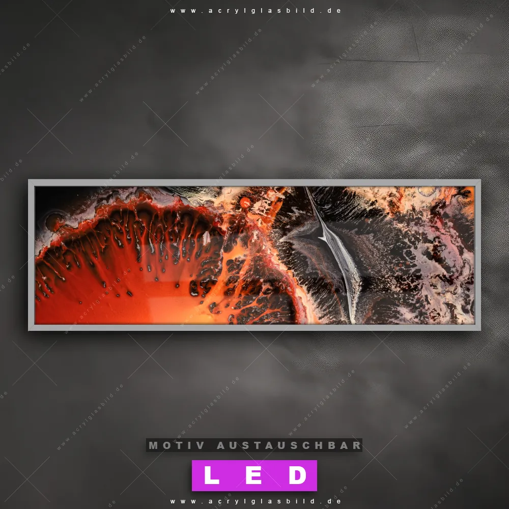 Wer will schon dunkle, triste Wände? Mit unserem LED Acrylglasbild Canvalight® DIA Lava im Fluid Painting und seiner fantastischen LED-Ausleuchtung werden deine Wände in Arzt - Praxis, Büro - Kanzlei, Wohnzimmer - Schlafzimmer, Bar - Gastronomie, Friseur - Beauty zu echten Hinguckern. Wenn du auf der Suche nach einem beleuchteten Wandbild aus Acrylglas mit Flüssigkeit, Acryl, flüssig, Farbe, Marmorierung, Tinte, Alkohol, Lava, Glut, Vulkan, Fluid Art bist, dann solltest du unser LED Leuchhtbild heiße Lava mit den beeindruckenden Motiv-Farben Schwarz, Rot, Orange nicht verpassen. Gestaltet im angesagten Abstrakt, Modern Art Stil, passt das LED Bild mit DIA-Klapprahmen und wechselbarer Acrylglas-Scheibe perfekt zu jedem Einrichtungsstil – selbst in deinem kleinen Dschungel aus Kreativität und Chaos!
