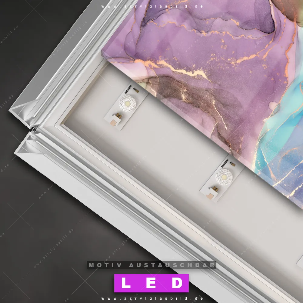 Du bist auf der Suche nach einem dimmbaren Muster - Texturen LED Bild mit Fernbedienung und optionaler Farbtemperatursteuerung? Dann haben wir hier genau das richtige Wandbild mit LED Beleuchtung für dich: Unser Canvalight® DIA LED Acrylglasbild Fluid Art Summertime im Querformat mit austauschbarer bedruckter Acrylglas-Scheibe. Dieses Leuchtbild bringt sofort Partybeleuchtung in deine Räume!