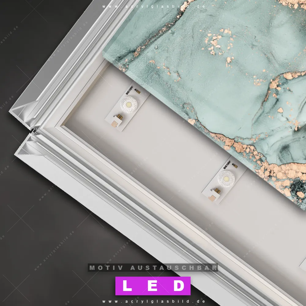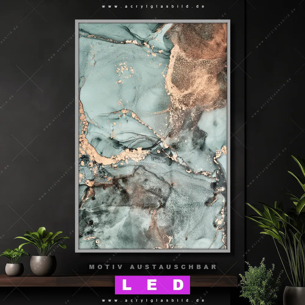 Wer braucht schon langweilige Wände, wenn man sie mit unserem LED Acrylglasbild Canvalight® DIA Fluid Painting türkis-gold aufpeppen kann? Dank der genialen LED-Ausleuchtung wirst du in Arzt - Praxis, Büro - Kanzlei, Wohnzimmer - Schlafzimmer, Bar - Gastronomie, Friseur - Beauty, Küche - Esszimmer nie wieder über deine eigenen Füße stolpern. Wenn du nach einem beleuchteten Wandbild aus Acrylglas mit Flüssigkeit, Acryl, flüssig, Farbe, Marmorierung, Struktur, Fluid Art suchst, dann ist unser LED Acrylglasbild Goldzauber in Türkis in den hammermäßigen Motiv-Farben Gold, Braun, Ocker, Blau, Bunt, Grün, Hellblau, Hellgrün, Mint, Türkis genau das richtige LED Bild für dich. Im coolen Abstrakt, Modern Art, Minimalistisch, Natürlich - Realistisch Stil gestaltet, passt das LED Leuchtbild mit DIA-Klapprahmen und glänzender Front aus Acrylglas perfekt zu jedem Einrichtungsstil – sogar zu deinem chaotischen Kreativlabor!