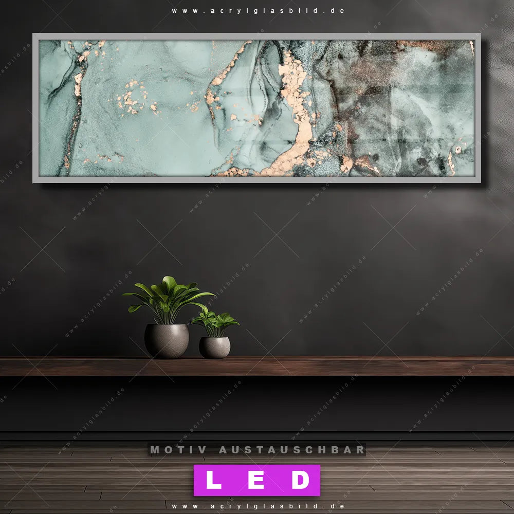 Wer will schon dunkle, triste Wände? Mit unserem LED Acrylglasbild Canvalight® DIA Fluid Painting türkis-gold und seiner fantastischen LED-Ausleuchtung werden deine Wände in Arzt - Praxis, Büro - Kanzlei, Wohnzimmer - Schlafzimmer, Bar - Gastronomie, Friseur - Beauty, Küche - Esszimmer zu echten Hinguckern. Wenn du auf der Suche nach einem beleuchteten Wandbild aus Acrylglas mit Flüssigkeit, Acryl, flüssig, Farbe, Marmorierung, Struktur, Fluid Art bist, dann solltest du unser LED Leuchhtbild Goldzauber in Türkis mit den beeindruckenden Motiv-Farben Gold, Braun, Ocker, Blau, Bunt, Grün, Hellblau, Hellgrün, Mint, Türkis nicht verpassen. Gestaltet im angesagten Abstrakt, Modern Art, Minimalistisch, Natürlich - Realistisch Stil, passt das LED Bild mit DIA-Klapprahmen und wechselbarer Acrylglas-Scheibe perfekt zu jedem Einrichtungsstil – selbst in deinem kleinen Dschungel aus Kreativität und Chaos!