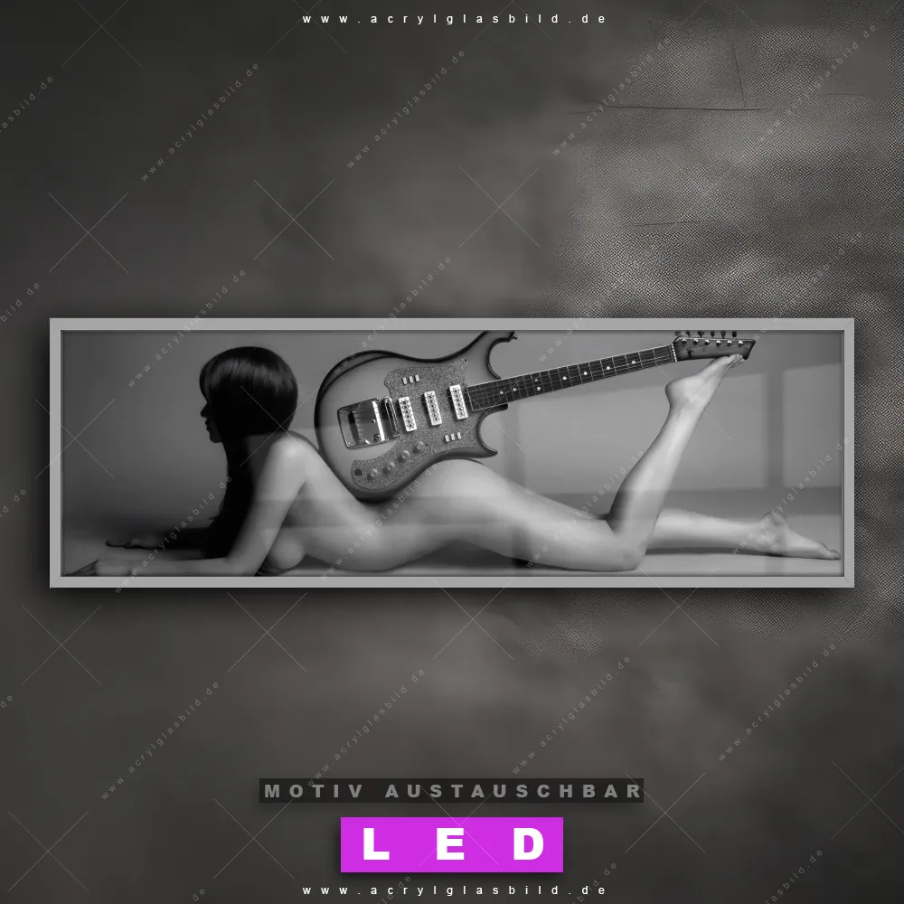Deine Wände könnten dringend ein dimmbares LED Bild mit Fernbedienung und optionaler Farbtemperatursteuerung gebrauchen? Dann haben wir das perfekte Wandbild mit LED Beleuchtung für dich: unser mega-cooles Erotik - Akt Canvalight® DIA LED Acrylglasbild! Mit unserem angesagten Leuchtbild aus Acrylglas im Panorama-Format und der austauschbaren bedruckten Acrylglas-Scheibe Frau & Gitarre No.2 bringst du nicht nur Licht, sondern auch jede Menge Flair in deine Räume.