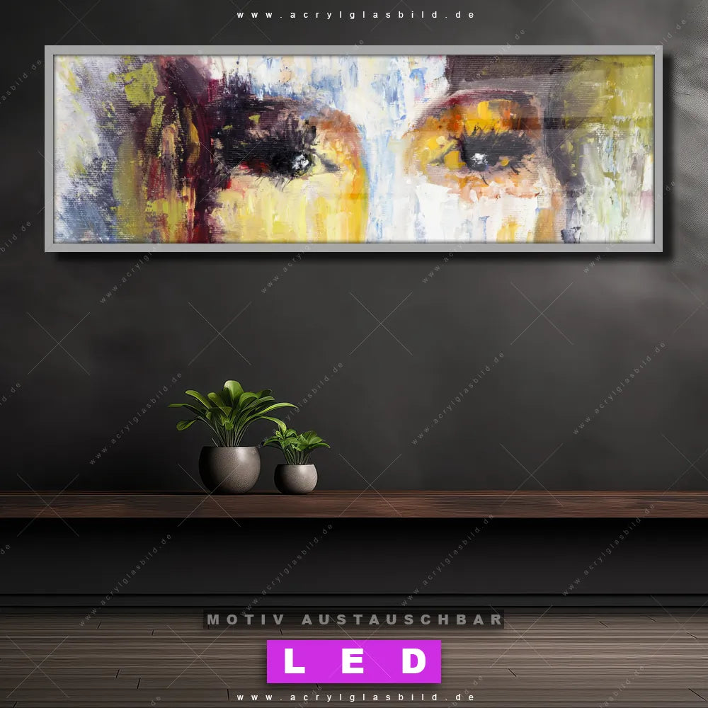 Wer will schon dunkle, triste Wände? Mit unserem LED Acrylglasbild Canvalight® DIA abstraktes Gesichtsporträt einer Frau und seiner fantastischen LED-Ausleuchtung werden deine Wände in Wohnzimmer - Schlafzimmer, Bar - Gastronomie, Friseur - Beauty zu echten Hinguckern. Wenn du auf der Suche nach einem beleuchteten Wandbild aus Acrylglas mit Abstrakt, Modern, Kunst, Gemälde, Ölfarbe, Leinwand, Frau, Portrait, Martini, Cocktail bist, dann solltest du unser LED Leuchhtbild weibliches Gesicht mit Glas mit den beeindruckenden Motiv-Farben Blau, Weiss, Gelb , Rot, Schwarz nicht verpassen. Gestaltet im angesagten Abstrakt, Modern Art Stil, passt das LED Bild mit DIA-Klapprahmen und wechselbarer Acrylglas-Scheibe perfekt zu jedem Einrichtungsstil – selbst in deinem kleinen Dschungel aus Kreativität und Chaos!