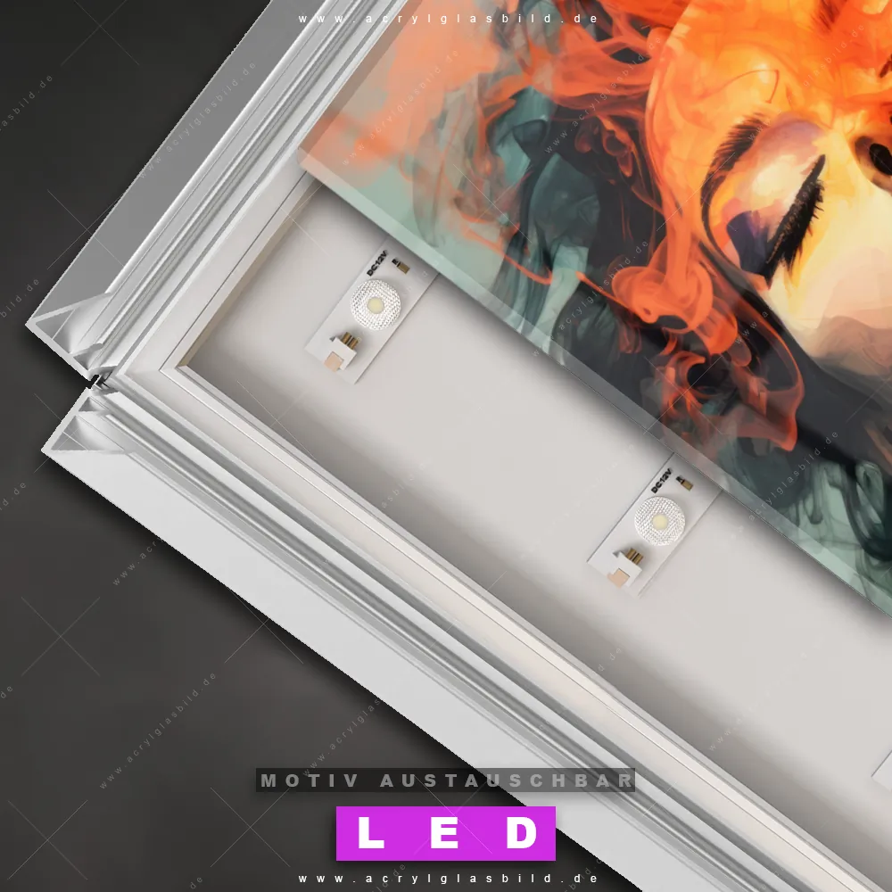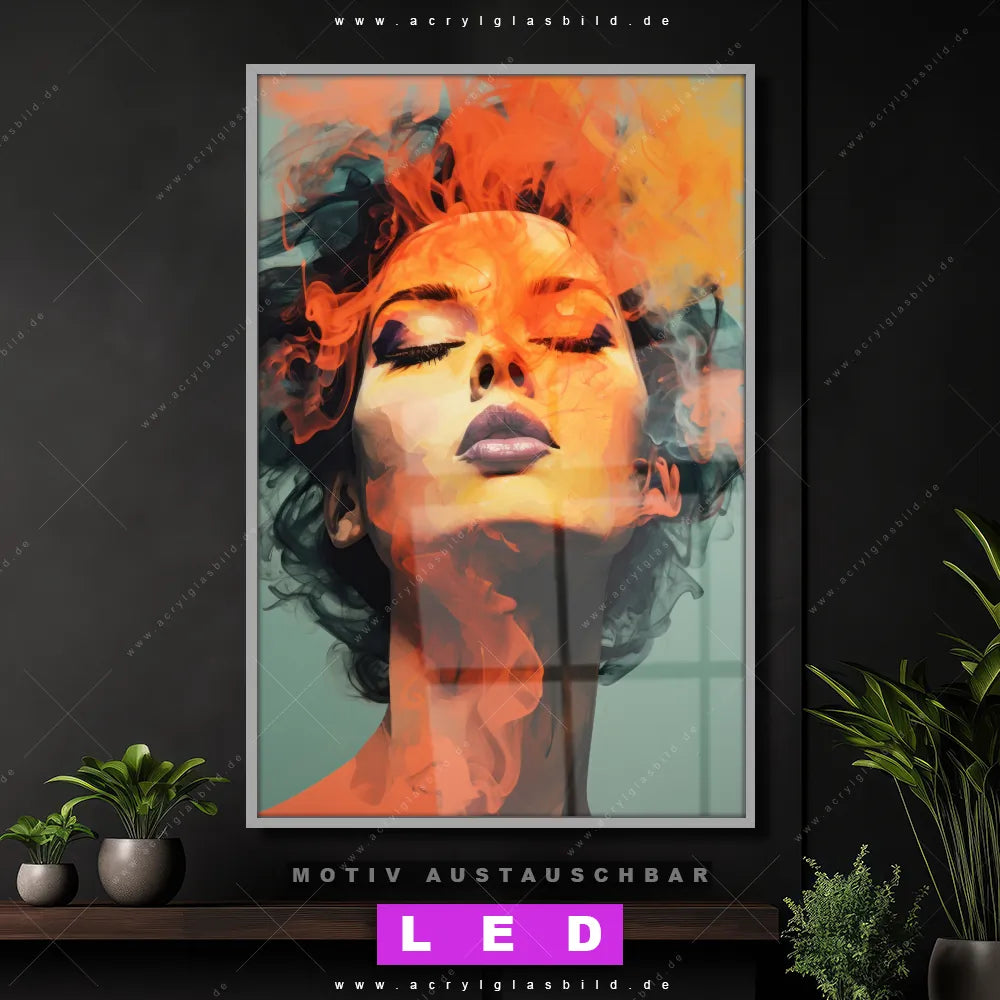 Du suchst nach einem Wandbild mit LED Beleuchtung als ultimativen Hingucker für deine Wände? Dann haben wir das perfekte dimmbare LED Bild mit Fernbedienung und optionaler Farbtemperatursteuerung für dich: unser abgefahrenes Porträts - Menschen Canvalight® DIA LED Acrylglasbild! Mit dem LED Leuchtbild aus Acrylglas Frau mit buntem Rauch im Hochformat mit austauschbarer bedruckter Acrylglas-Scheibe bringst du nicht nur Licht, sondern auch ordentlich Stil in deine Bude.