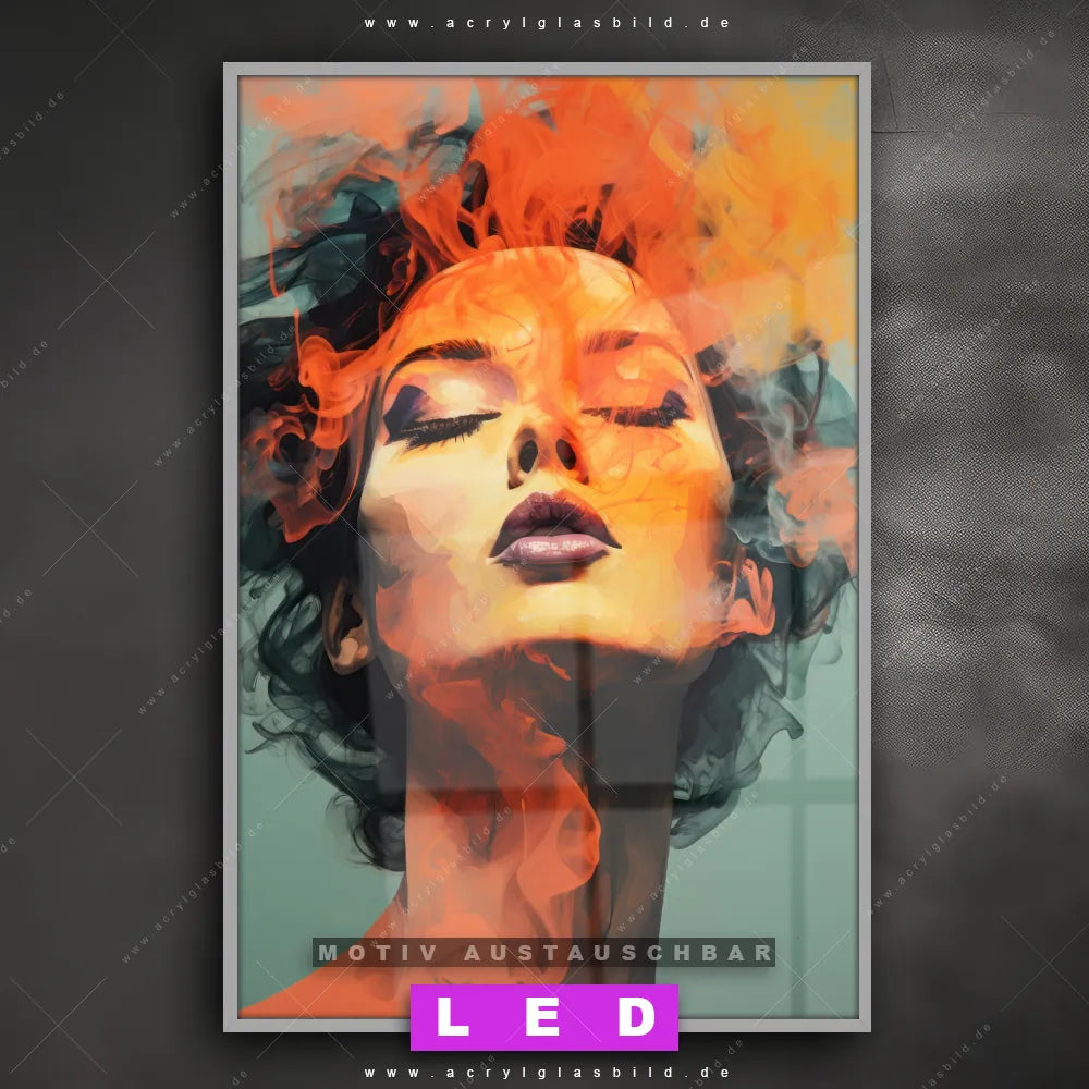 LED Acrylglasbild Canvalight® DIA | Frau mit buntem Rauch | Hochformat