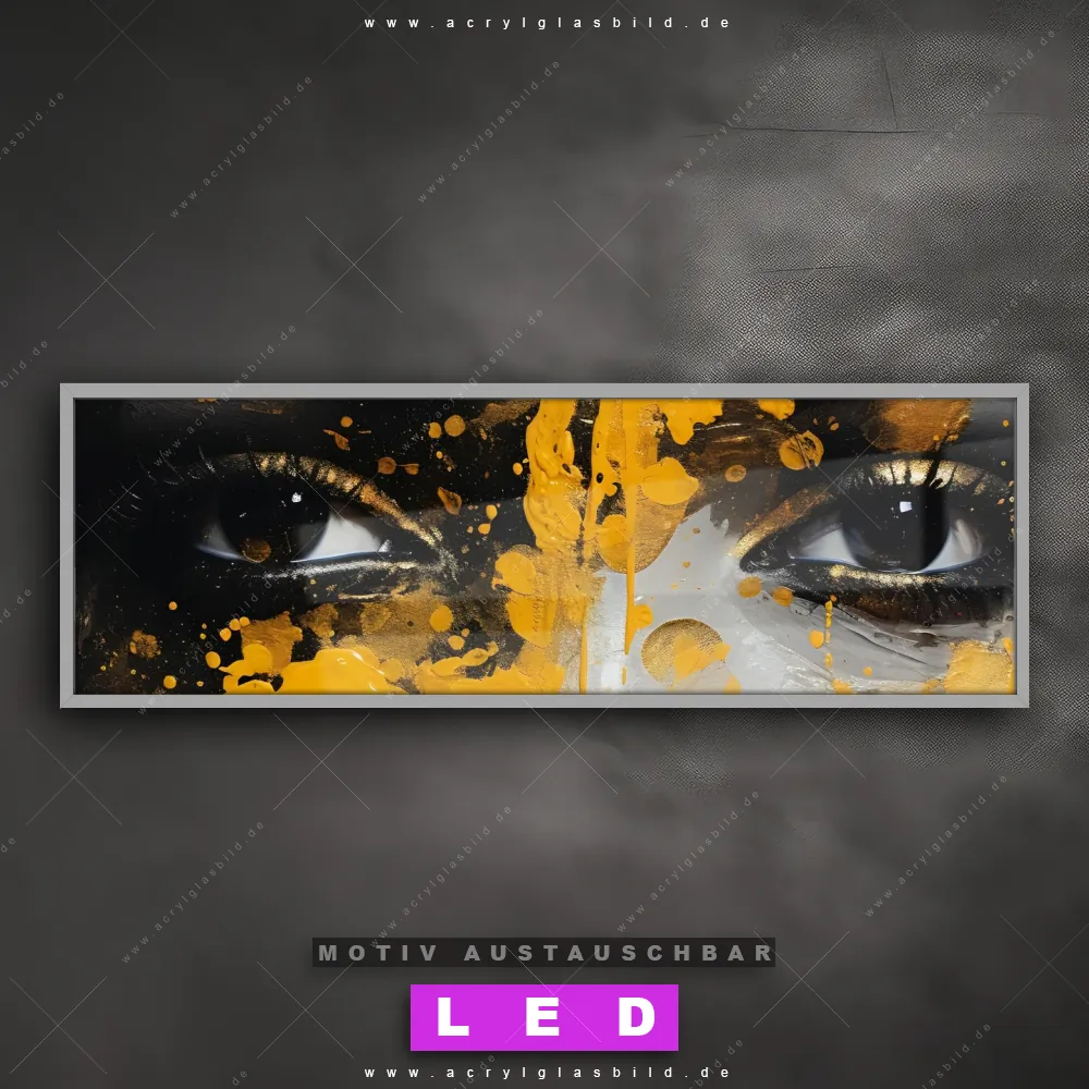 Deine Wände könnten dringend ein dimmbares LED Bild mit Fernbedienung und optionaler Farbtemperatursteuerung gebrauchen? Dann haben wir das perfekte Wandbild mit LED Beleuchtung für dich: unser mega-cooles Porträts - Menschen Canvalight® DIA LED Acrylglasbild! Mit unserem angesagten Leuchtbild aus Acrylglas im Panorama-Format und der austauschbaren bedruckten Acrylglas-Scheibe Frau mit Goldfarbe bringst du nicht nur Licht, sondern auch jede Menge Flair in deine Räume.