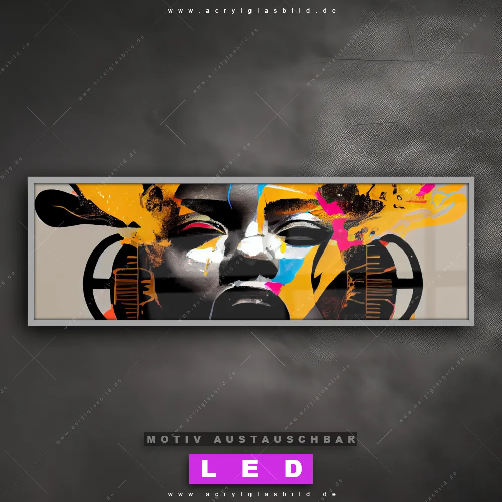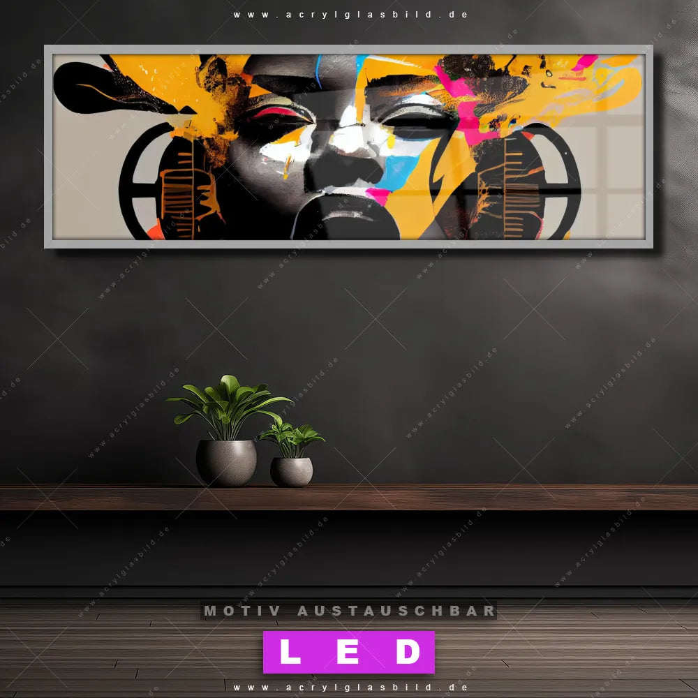 Wer will schon dunkle, triste Wände? Mit unserem LED Acrylglasbild Canvalight® DIA Musik in bunten Farben und seiner fantastischen LED-Ausleuchtung werden deine Wände in Wohnzimmer - Schlafzimmer, Bar - Gastronomie, Friseur - Beauty, Flur - Eingangsbereich zu echten Hinguckern. Wenn du auf der Suche nach einem beleuchteten Wandbild aus Acrylglas mit Frau, Portrait, Gesicht, Mädchen, Dame, Farbe, Musik, Kopfhörer bist, dann solltest du unser LED Leuchhtbild Buntes Gesicht einer musikalischen Frau mit den beeindruckenden Motiv-Farben Beige, Schwarz, Orange, Pink nicht verpassen. Gestaltet im angesagten Abstrakt, Modern Art Stil, passt das LED Bild mit DIA-Klapprahmen und wechselbarer Acrylglas-Scheibe perfekt zu jedem Einrichtungsstil – selbst in deinem kleinen Dschungel aus Kreativität und Chaos!