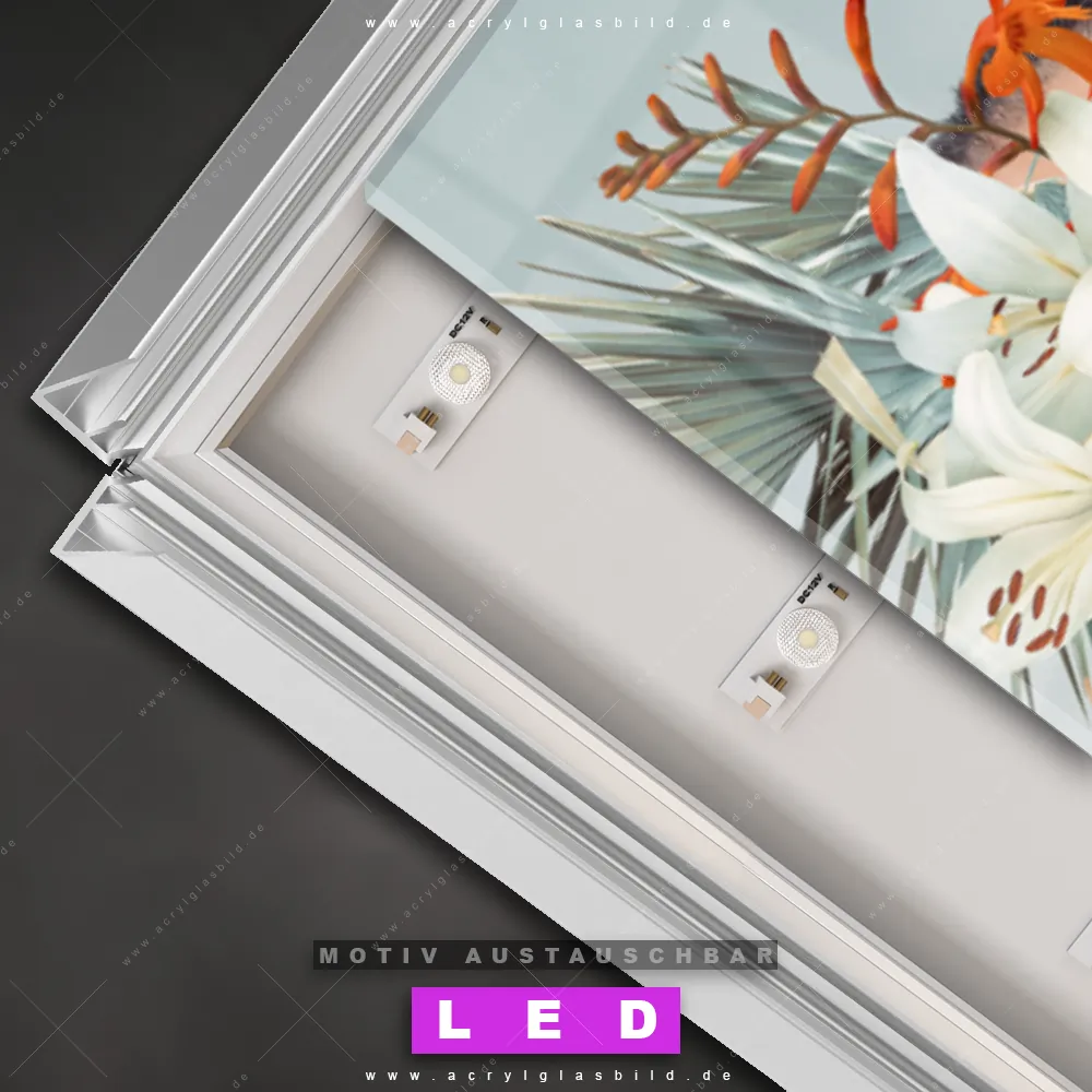 Also, warum noch zögern? Mach deine Wände mit einem Leuchtbild zum absoluten Hingucker und bestelle jetzt das Canvalight® DIA LED Acrylglasbild Frau hinter Blütenzauber. Deine Wände werden leuchten, und deine Freunde werden dank der wechselbaren Motive beeindruckt sein!