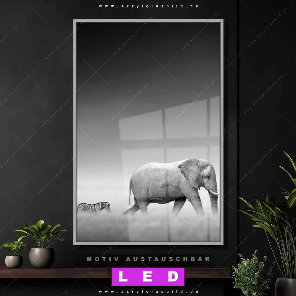 Wer braucht schon langweilige Wände, wenn man sie mit unserem LED Acrylglasbild Canvalight® DIA wahre Freunde aufpeppen kann? Dank der genialen LED-Ausleuchtung wirst du in Arzt - Praxis, Bar - Gastronomie, Büro - Kanzlei, Flur - Eingangsbereich, Friseur - Beauty, Wohnzimmer - Schlafzimmer nie wieder über deine eigenen Füße stolpern. Wenn du nach einem beleuchteten Wandbild aus Acrylglas mit Afrika, wild, Safari, Zebra, Elefant, Savanne, Steppe suchst, dann ist unser LED Acrylglasbild Zebra und Elefant in den hammermäßigen Motiv-Farben Weiss, Schwarz genau das richtige LED Bild für dich. Im coolen Natürlich - Realistisch, Schwarz - Weiss Stil gestaltet, passt das LED Leuchtbild mit DIA-Klapprahmen und glänzender Front aus Acrylglas perfekt zu jedem Einrichtungsstil – sogar zu deinem chaotischen Kreativlabor!