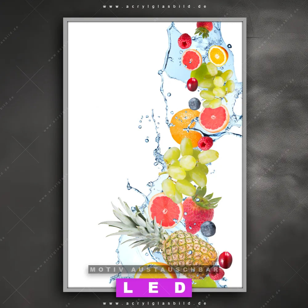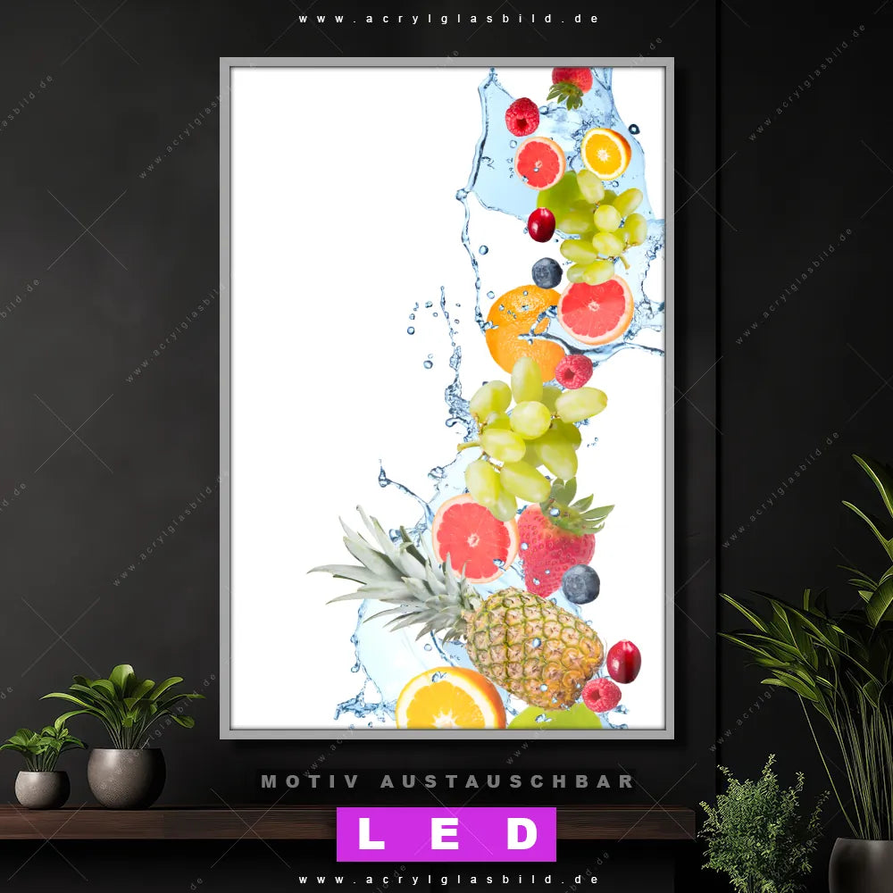 LED Acrylglasbild Canvalight® DIA | Früchte in Spritzwasser | Hochformat