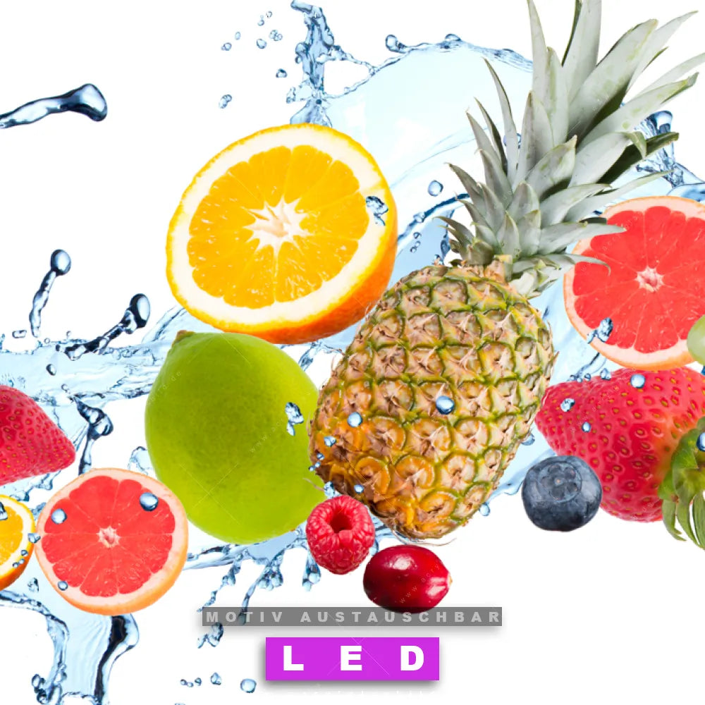 Wer braucht schon langweilige Wände, wenn man sie mit unserem LED Acrylglasbild Canvalight® DIA frisches Obst mit Wasser aufpeppen kann? Dank der genialen LED-Ausleuchtung wirst du in Bar - Gastronomie, Küche - Esszimmer nie wieder über deine eigenen Füße stolpern. Wenn du nach einem beleuchteten Wandbild aus Acrylglas mit Obst, Zitrusfrüchte, Früchte, Kiwi, frisch, spritzig, Ananas, Spritzwasser, Wasser, Spritzer, Tropfen, Wassertropfen, Orange, Apfel, Zitrone suchst, dann ist unser LED Acrylglasbild bunte Früchte mit Wasserspritzern in den hammermäßigen Motiv-Farben Bunt, Weiss, Blau, Gelb , Braun, Grün, Lila, Orange, Rot genau das richtige LED Bild für dich. Im coolen Mixed Media, Modern Art Stil gestaltet, passt das LED Leuchtbild mit DIA-Klapprahmen und glänzender Front aus Acrylglas perfekt zu jedem Einrichtungsstil – sogar zu deinem chaotischen Kreativlabor!