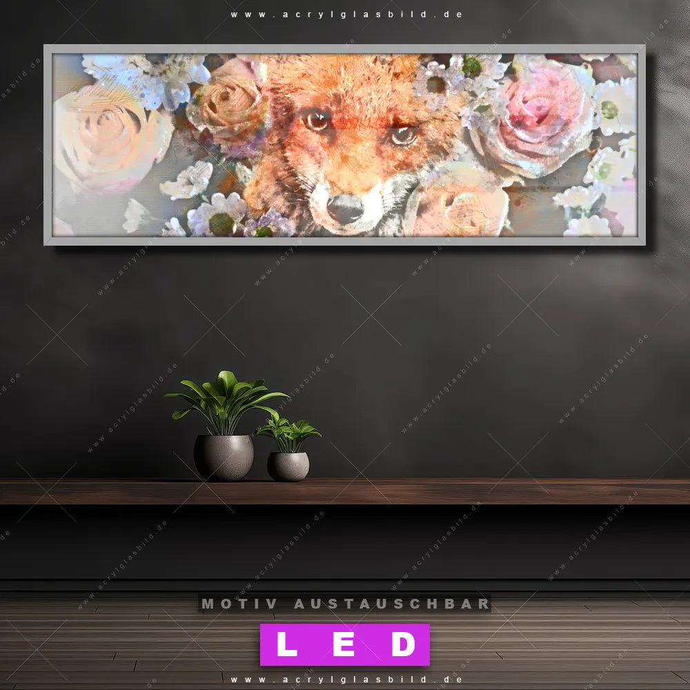 Deine Wände könnten dringend ein dimmbares LED Bild mit Fernbedienung und optionaler Farbtemperatursteuerung gebrauchen? Dann haben wir das perfekte Wandbild mit LED Beleuchtung für dich: unser mega-cooles Tierwelt, Blumen - Botanik Canvalight® DIA LED Acrylglasbild! Mit unserem angesagten Leuchtbild aus Acrylglas im Panorama-Format und der austauschbaren bedruckten Acrylglas-Scheibe Fuchs & Blumen bringst du nicht nur Licht, sondern auch jede Menge Flair in deine Räume.