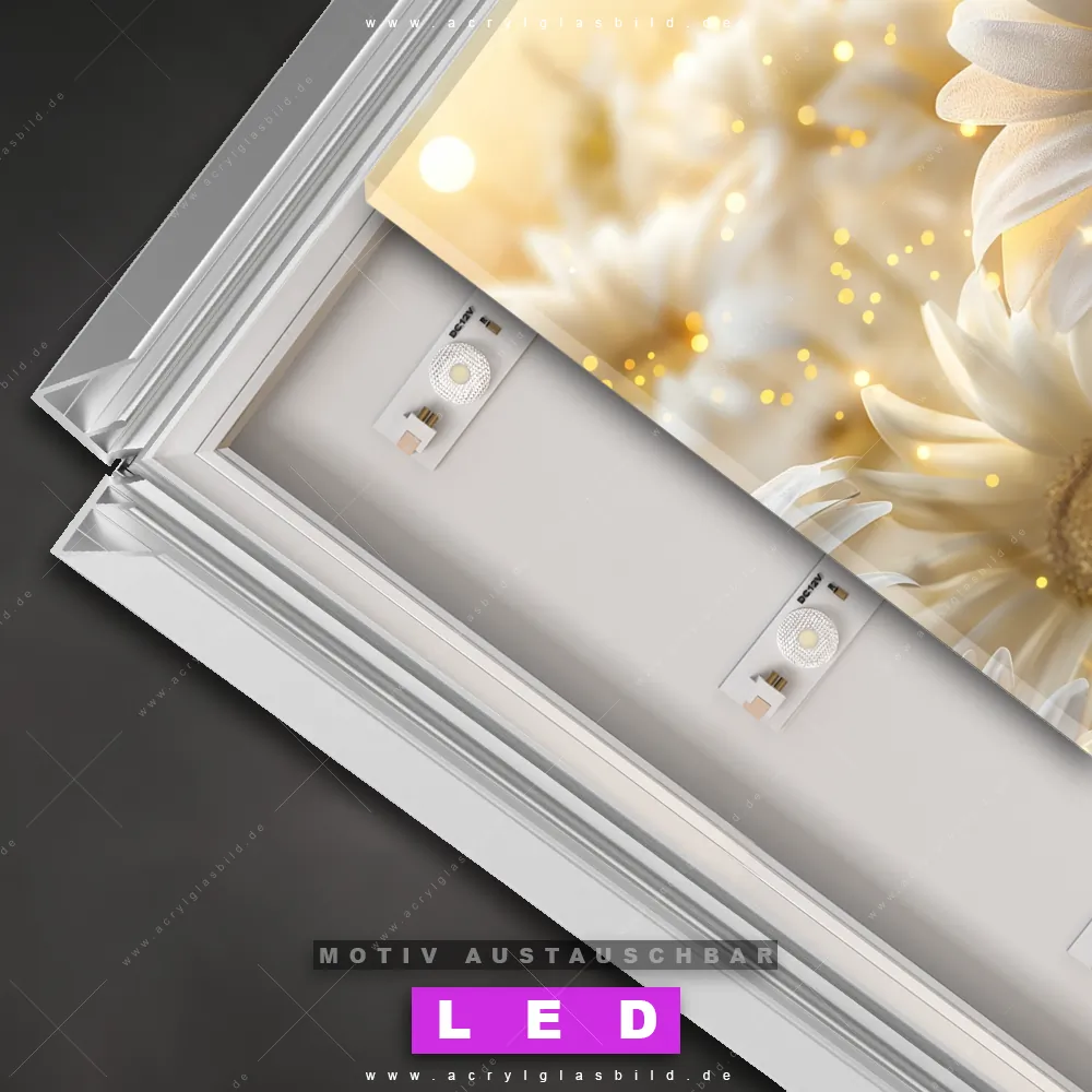 Also, worauf wartest du noch? Gib mit einem beleuchteten Wandbild mit wechselbarer Acrylglas-Scheibe deinen Wänden das gewisse Etwas und bestelle jetzt das LED Acrylglasbild Canvalight® DIA Strahlende Gänseblümchen – dein Zuhause wird es dir danken und deine Freunde werden dank der wechselbaren Motive erblassen!