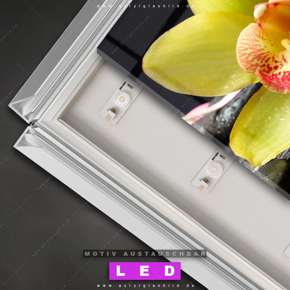 Du suchst nach einem Wandbild mit LED Beleuchtung als ultimativen Hingucker für deine Wände? Dann haben wir das perfekte dimmbare LED Bild mit Fernbedienung und optionaler Farbtemperatursteuerung für dich: unser abgefahrenes Buddha - Feng Shui, Blumen - Botanik Canvalight® DIA LED Acrylglasbild! Mit dem LED Leuchtbild aus Acrylglas Gelbe Orchidee im Hochformat mit austauschbarer bedruckter Acrylglas-Scheibe bringst du nicht nur Licht, sondern auch ordentlich Stil in deine Bude.