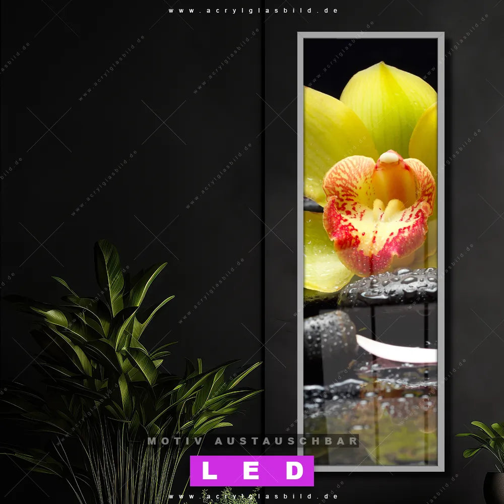 Bist du bereit, deine Wände mit einem dimmbaren LED Bild mit Fernbedienung und optionaler Farbtemperatursteuerung auf das nächste Level zu bringen? Unser Buddha - Feng Shui, Blumen - Botanik Canvalight® DIA LED Acrylglasbild ist genau das, was du brauchst! Das Wandbild mit LED Beleuchtung im Schmalen Format mit austauschbarer bedruckter Acrylglas-Scheibe Gelbe Orchidee bringt Licht und Stil in dein Zuhause – und das in null Komma nichts!