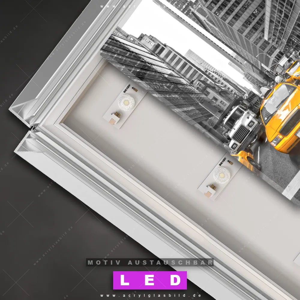Also, worauf wartest du noch? Gib mit einem beleuchteten Wandbild mit wechselbarer Acrylglas-Scheibe deinen Wänden das gewisse Etwas und bestelle jetzt das LED Acrylglasbild Canvalight® DIA New Yorks Straßen – dein Zuhause wird es dir danken und deine Freunde werden dank der wechselbaren Motive erblassen!