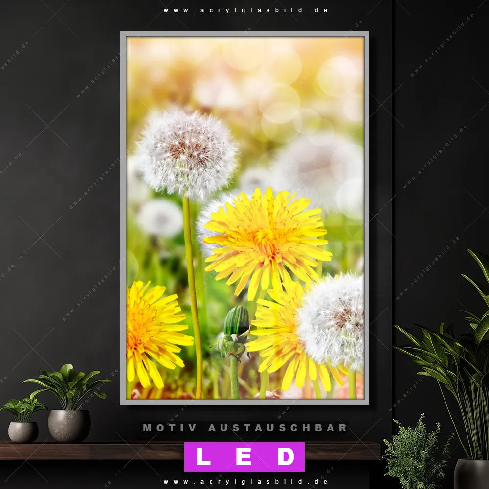 Du suchst nach einem Wandbild mit LED Beleuchtung als ultimativen Hingucker für deine Wände? Dann haben wir das perfekte dimmbare LED Bild mit Fernbedienung und optionaler Farbtemperatursteuerung für dich: unser abgefahrenes Blumen - Botanik, Landschaften Canvalight® DIA LED Acrylglasbild! Mit dem LED Leuchtbild aus Acrylglas Gelber Löwenzahn im Hochformat mit austauschbarer bedruckter Acrylglas-Scheibe bringst du nicht nur Licht, sondern auch ordentlich Stil in deine Bude.