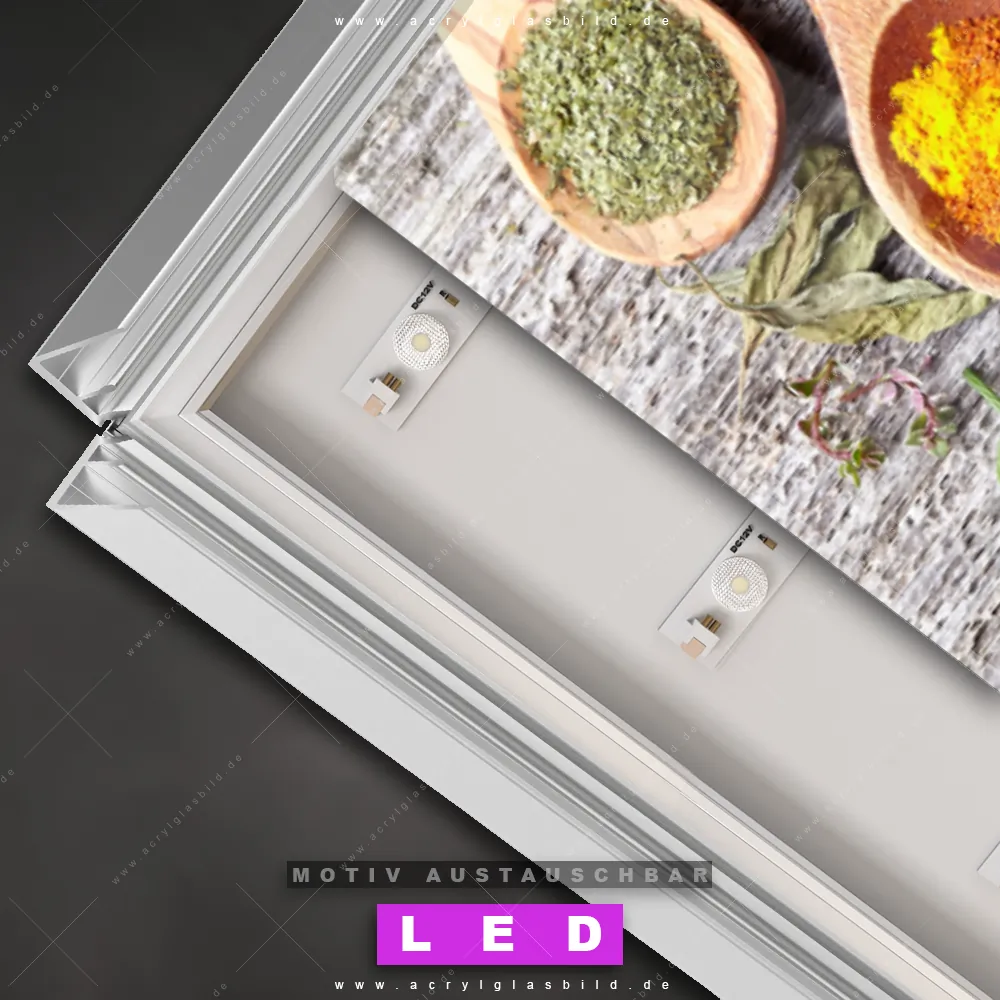 Also, worauf wartest du noch? Verwandle deine Wände mit einem LED Leuchtbild in wahre Kunstwerke und bestelle jetzt das Canvalight® DIA LED Acrylglasbild Kochlöffel mit Gewürzen und Kräutern. Deine Wände werden strahlen, und deine Freunde werden dank der wechselbaren Motive staunen!