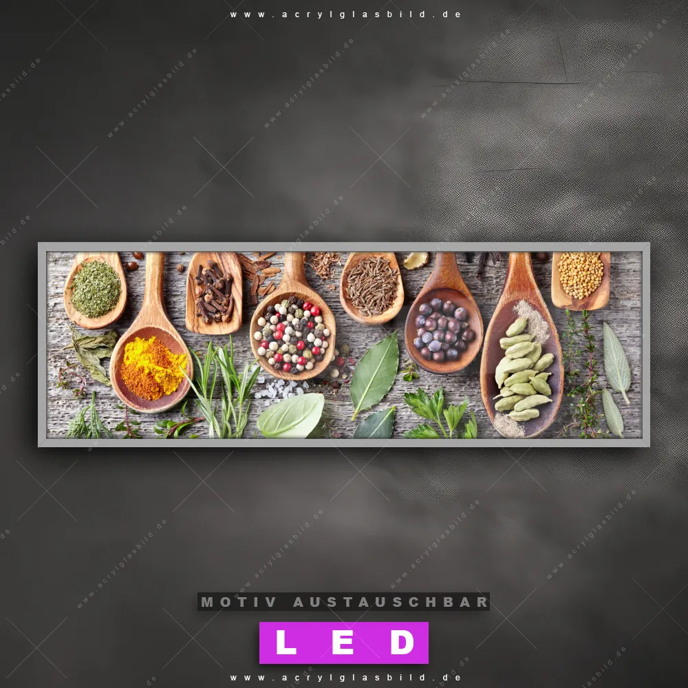 LED Acrylglasbild Canvalight® DIA | Gewürze auf Holzlöffeln | Panorama