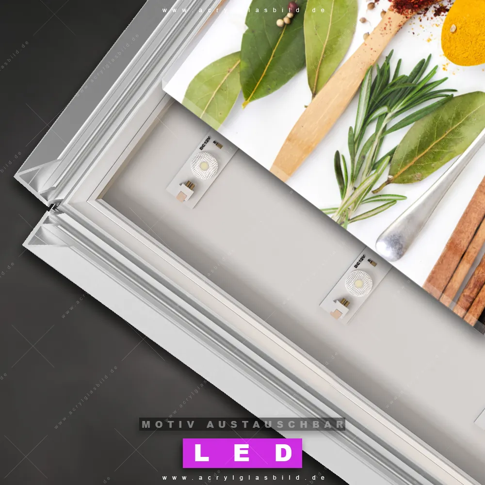 Wer braucht schon langweilige Wände, wenn man sie mit unserem LED Acrylglasbild Canvalight® DIA bunte Gewürz- und Kräutermischung aufpeppen kann? Dank der genialen LED-Ausleuchtung wirst du in Bar - Gastronomie, Küche - Esszimmer nie wieder über deine eigenen Füße stolpern. Wenn du nach einem beleuchteten Wandbild aus Acrylglas mit Gewürze, Kräuter, Löffel, kochen, Pfeffer, Salz, Curry, Chili suchst, dann ist unser LED Acrylglasbild Gewürzvielfalt auf hellem Tisch in den hammermäßigen Motiv-Farben Bunt, Schwarz genau das richtige LED Bild für dich. Im coolen Modern Art, Natürlich - Realistisch Stil gestaltet, passt das LED Leuchtbild mit DIA-Klapprahmen und glänzender Front aus Acrylglas perfekt zu jedem Einrichtungsstil – sogar zu deinem chaotischen Kreativlabor!